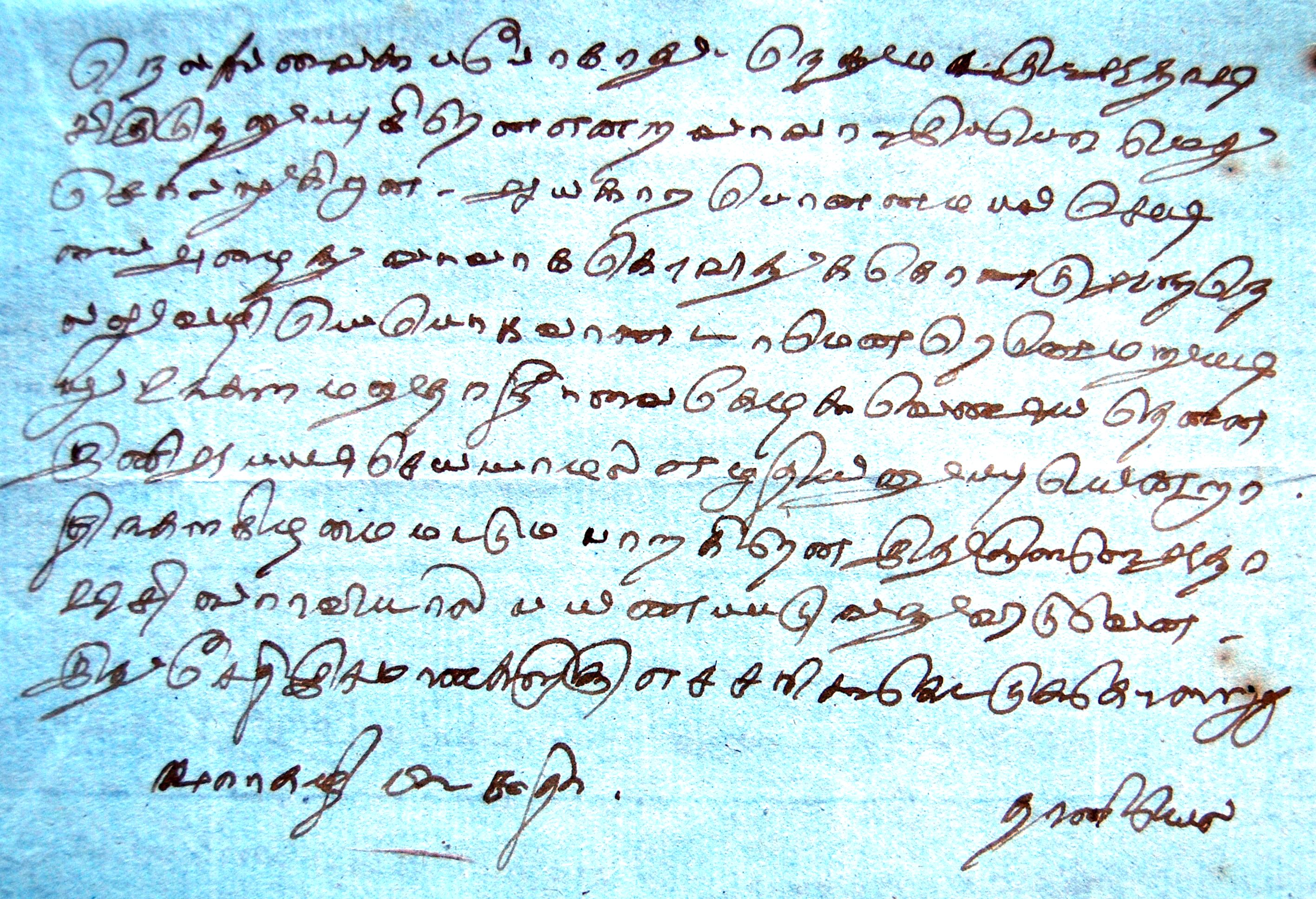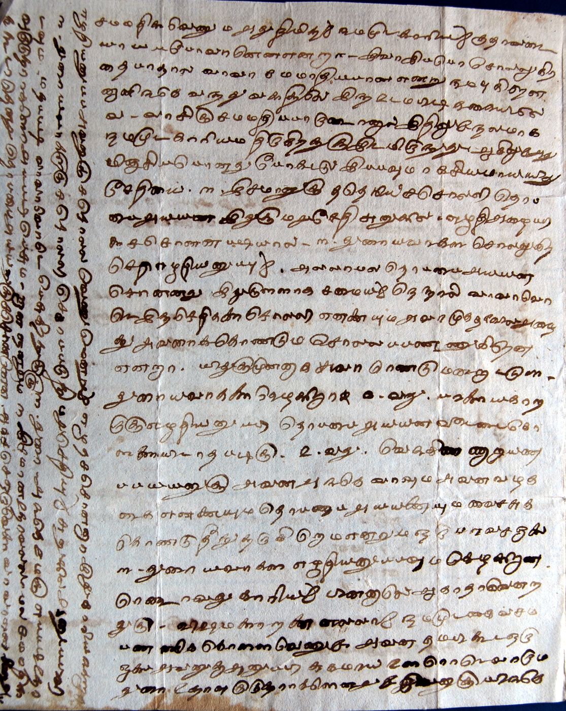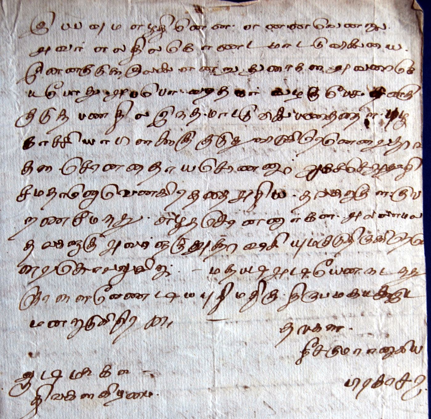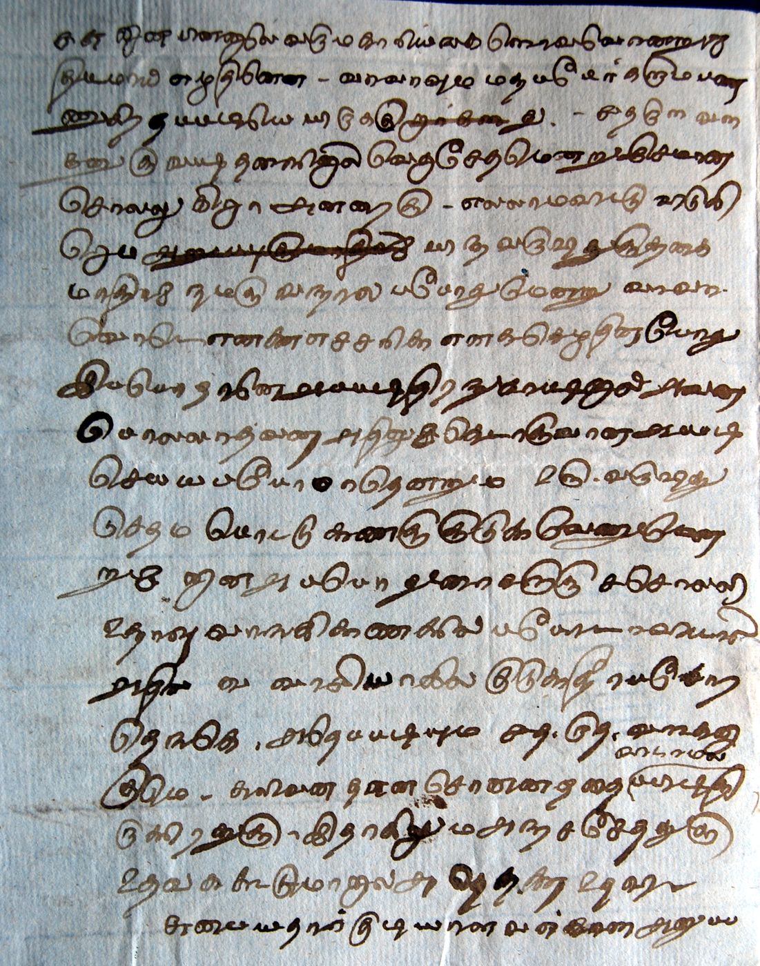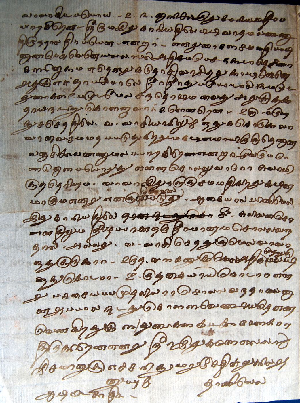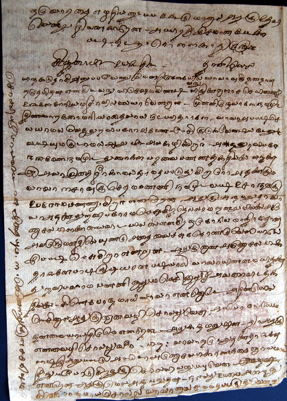 Daniel PulleyDaniel Pulley was born in 1740. He is also referred to as Christian Daniel. His grandfather, Johann d’Almeida (Heike Liebau) had converted from Catholicism to Protestantism and was a catechist at Tranquebar between 1707 and 1744. We know little about Daniel’s parents, except that they were Protestants. Daniel’s father died early and he was brought up by his grandfather on mother’s side. Johann d’ Almeida died in 1746. As a young man, Daniel learnt German and used every opportunity to learn more of it. From 1755, he taught Tamil to the missionaries David Poltzenhagen (1726-1756), Petrus Dame (1731-1766) and Ole Maderup (1711-1776). Besides German, he also learnt Danish. He undertook the post of the second translator (dubash) at the instigation of H. J. Forck. Daniel’s brother, Peter Rajappan was employed in the Danish Halle Mission, and later in the Moravian Brothers (Herrnhuter)A large number of the letters in the Archives are addressed to Piragasam Pulley, a personal dubash to the Governor. The letters cover the period 1782-1785? Most of the letters are dated only with the Tamil month and the Tamil date, and no year. The letters reflect his respect and affection to Piragasam Pulley. However, this situation changed in 1788, and in 1792 Daniel Pulley was decidedly unfriendly to Piragasam Pulley, and to the new governor, Peter Anker. One of the reasons quoted is that Daniel himself wanted the powerful position of the over-dubash, and thus more power. The life-story of Daniel Pulley may never have been known, but for the fact that he had narrated his autobiography to C. S. John, a missionary. C. S. John had sent this information to the Frankesche Stiftungen at Halle, where they are preserved. C. S. John reported that Daniel Pulley died during 1802. However, the proceedings of the Black Court (see 2185b_42under Black Court) seems to have recorded during 1805 that a case was adjourned as Daniel Pulley did not turn up. This probably was Johan Daniel Pulley, the son of Christian Daniel Pulley. . |