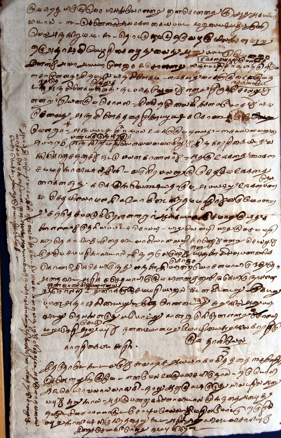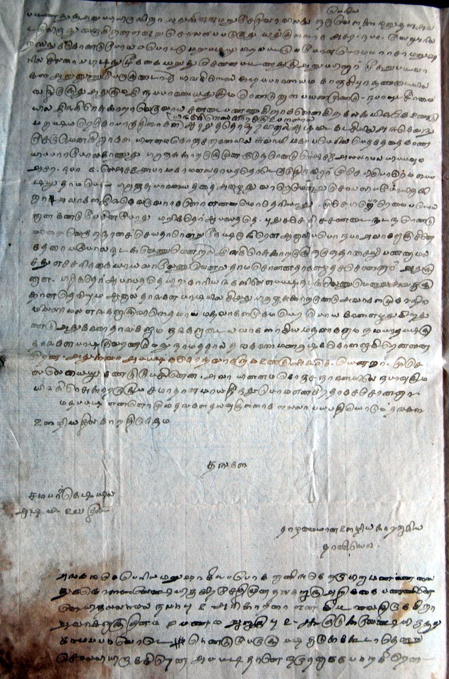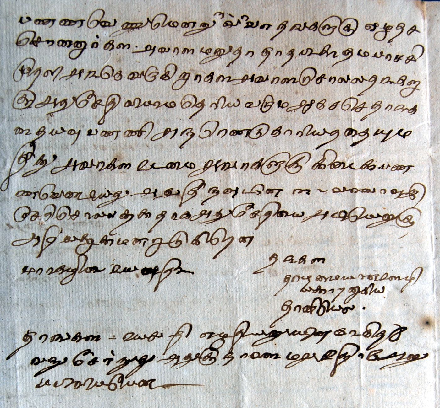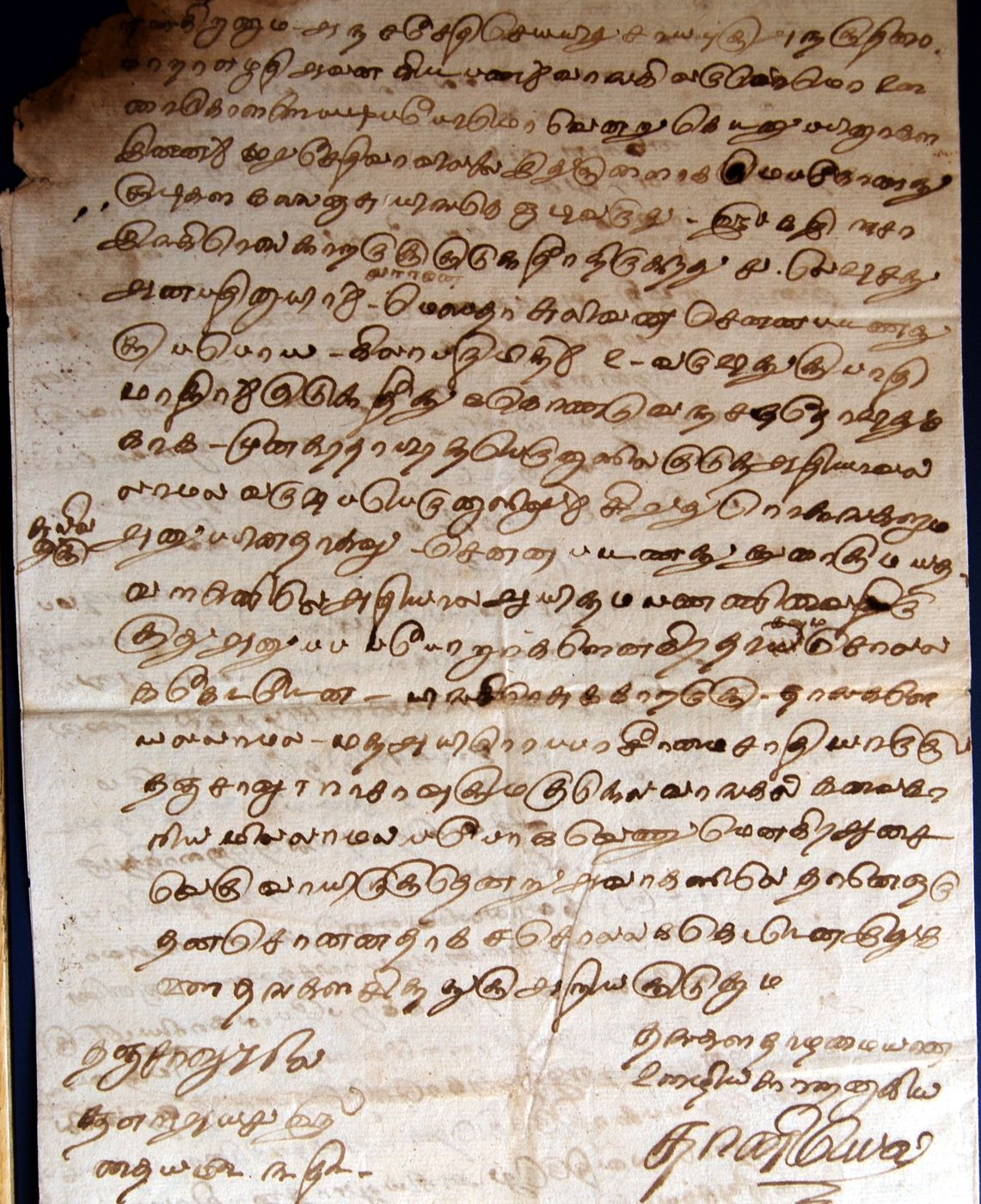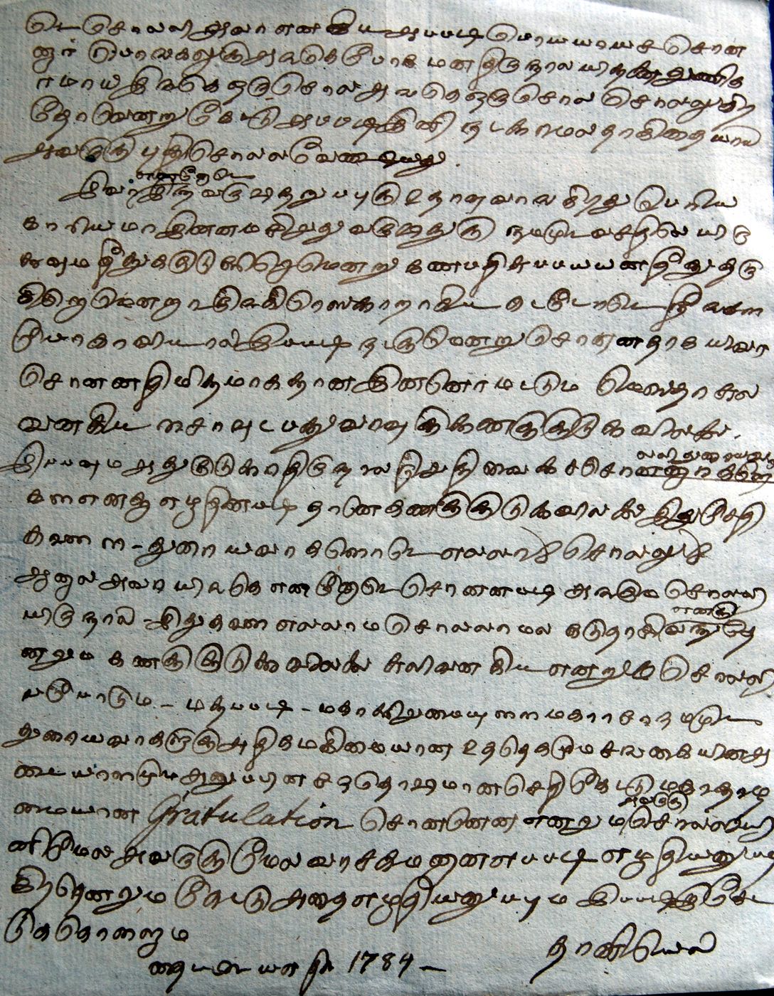 Daniel PulleyDaniel Pulley was born in 1740. He is also referred to as Christian Daniel. His grandfather, Johann d’Almeida (Heike Liebau) had converted from Catholicism to Protestantism and was a catechist at Tranquebar between 1707 and 1744. We know little about Daniel’s parents, except that they were Protestants. Daniel’s father died early and he was brought up by his grandfather on mother’s side. Johann d’ Almeida died in 1746. As a young man, Daniel learnt German and used every opportunity to learn more of it. From 1755, he taught Tamil to the missionaries David Poltzenhagen (1726-1756), Petrus Dame (1731-1766) and Ole Maderup (1711-1776). Besides German, he also learnt Danish. He undertook the post of the second translator (dubash) at the instigation of H. J. Forck. Daniel’s brother, Peter Rajappan was employed in the Danish Halle Mission, and later in the Moravian Brothers (Herrnhuter)A large number of the letters in the Archives are addressed to Piragasam Pulley, a personal dubash to the Governor. The letters cover the period 1782-1785? Most of the letters are dated only with the Tamil month and the Tamil date, and no year. The letters reflect his respect and affection to Piragasam Pulley. However, this situation changed in 1788, and in 1792 Daniel Pulley was decidedly unfriendly to Piragasam Pulley, and to the new governor, Peter Anker. One of the reasons quoted is that Daniel himself wanted the powerful position of the over-dubash, and thus more power. The life-story of Daniel Pulley may never have been known, but for the fact that he had narrated his autobiography to C. S. John, a missionary. C. S. John had sent this information to the Frankesche Stiftungen at Halle, where they are preserved. C. S. John reported that Daniel Pulley died during 1802. However, the proceedings of the Black Court (see 2185b_42under Black Court) seems to have recorded during 1805 that a case was adjourned as Daniel Pulley did not turn up. This probably was Johan Daniel Pulley, the son of Christian Daniel Pulley. . |