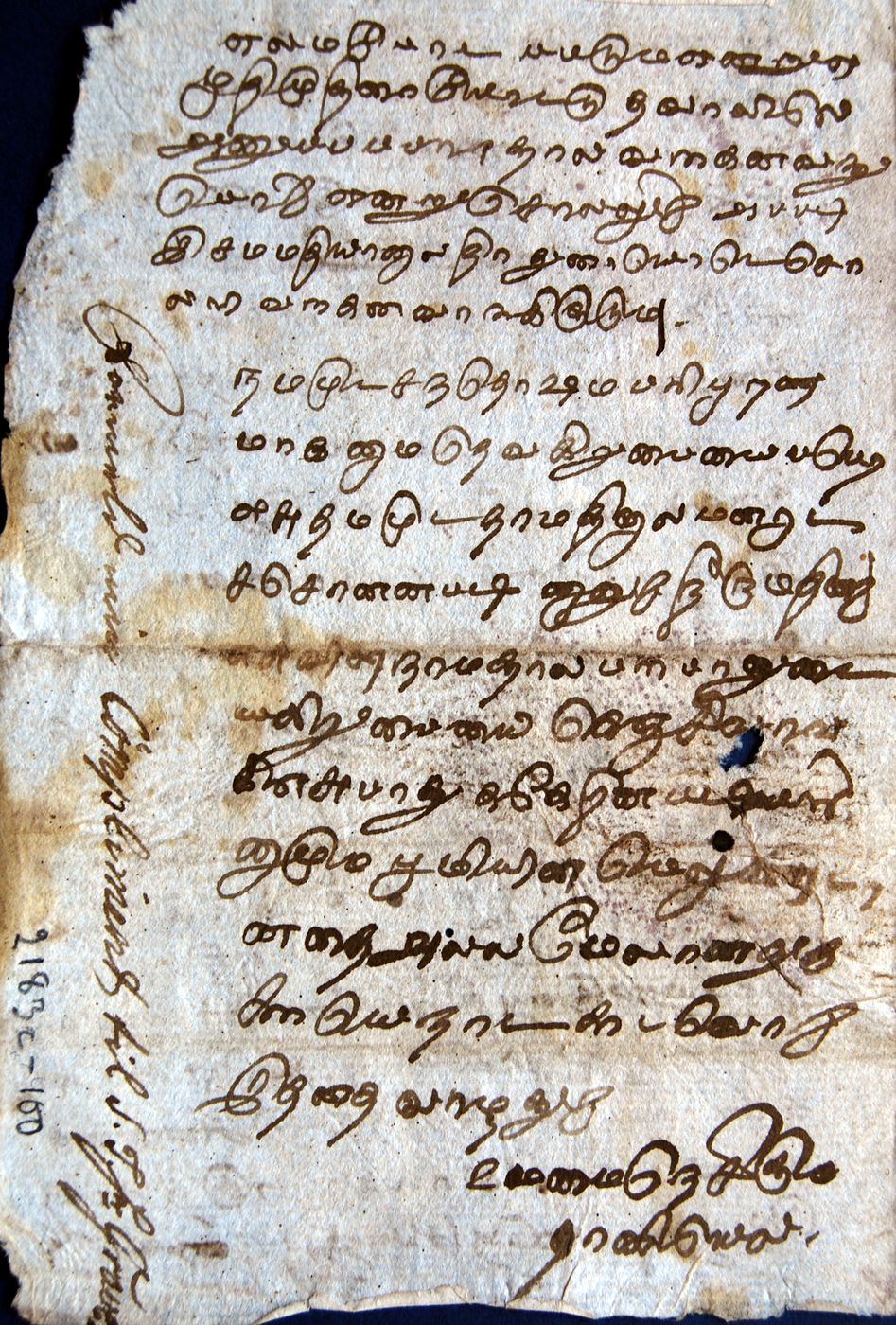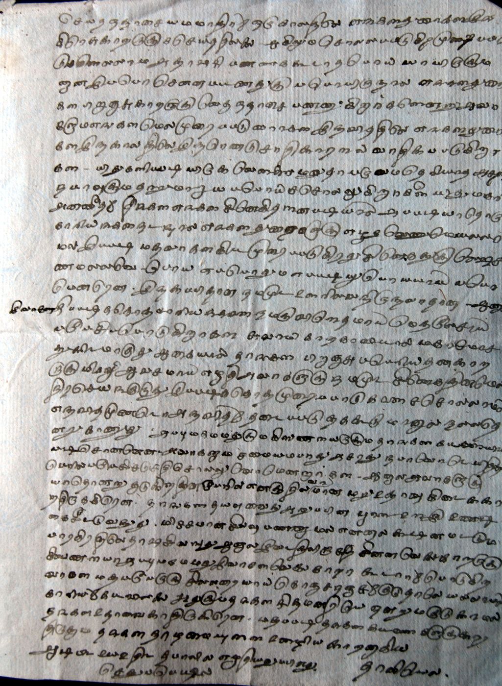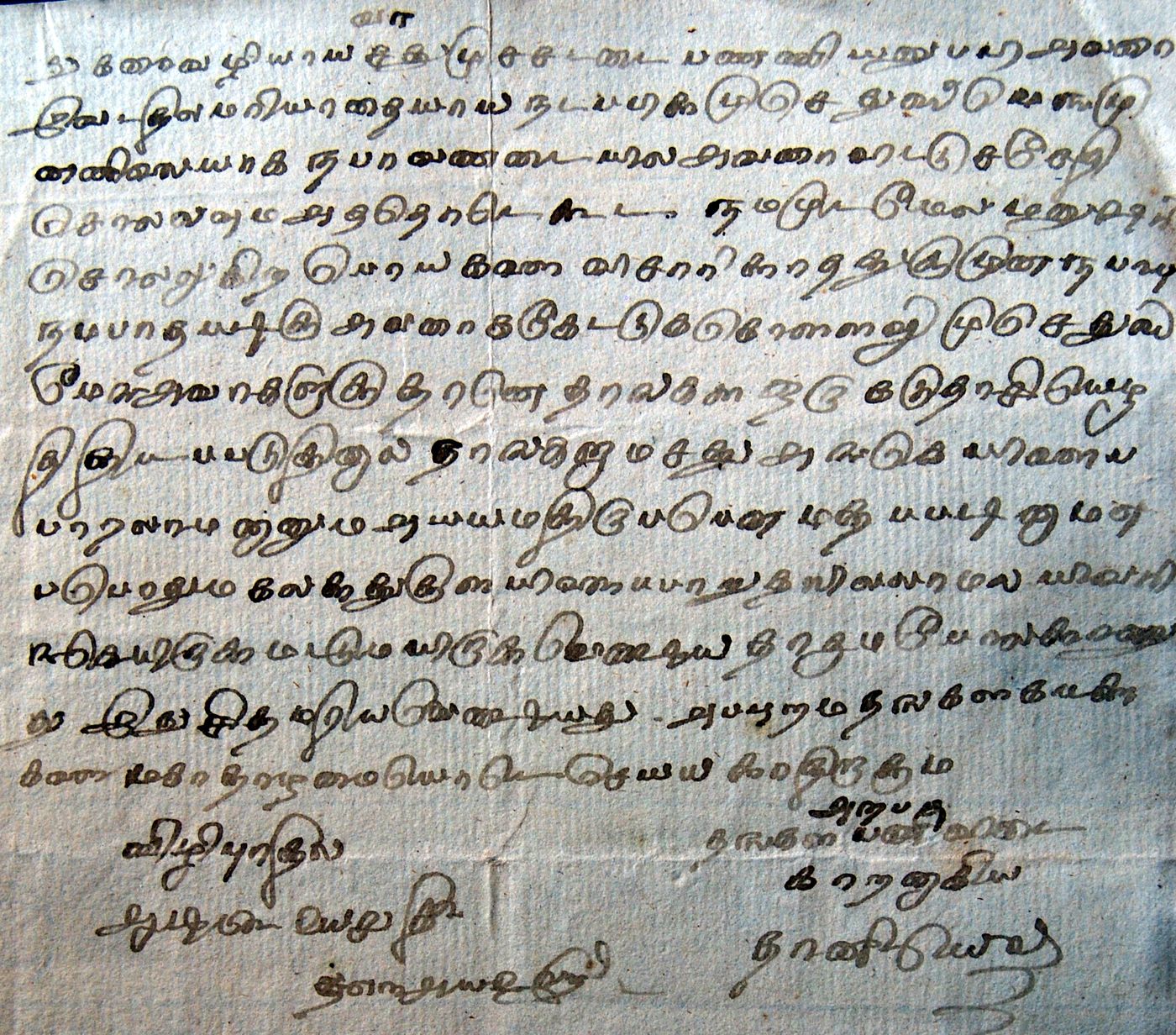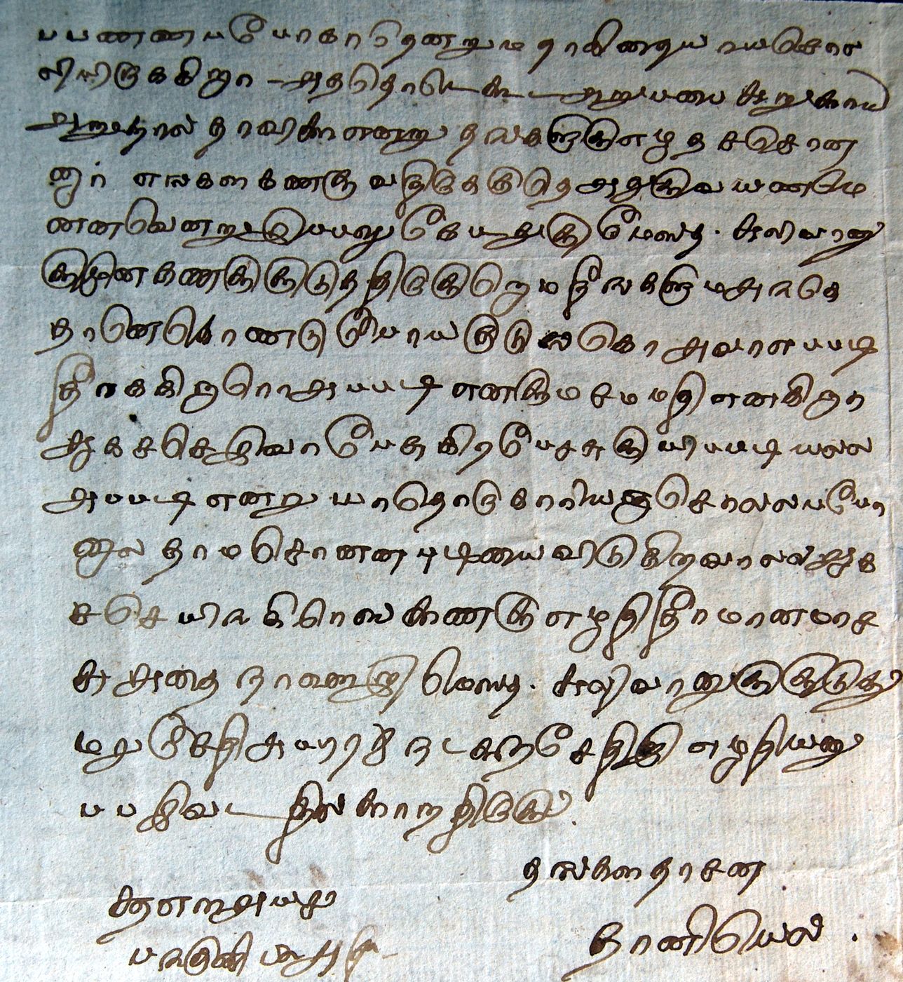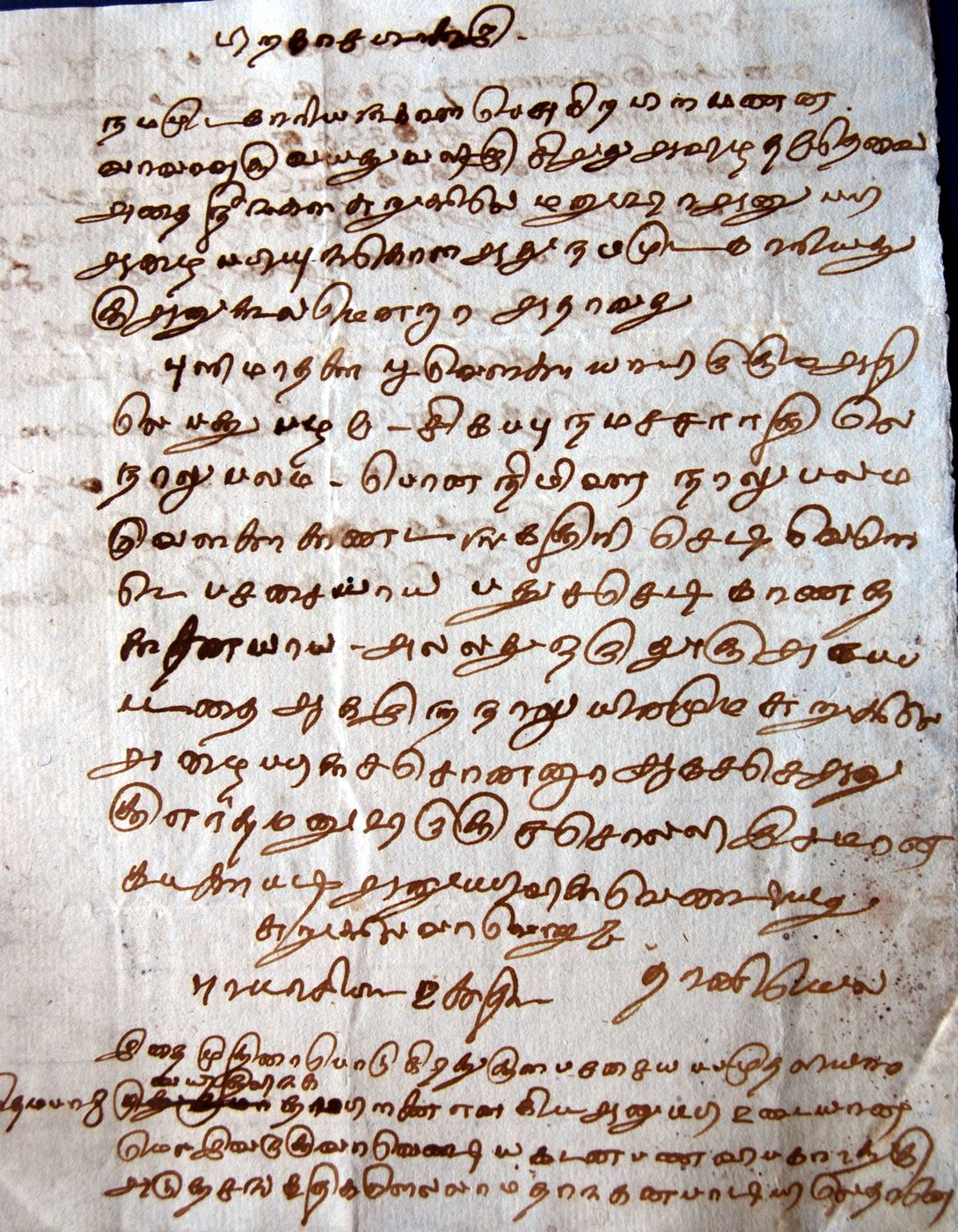 Daniel PulleyDaniel Pulley was born in 1740. He is also referred to as Christian Daniel. His grandfather, Johann d’Almeida (Heike Liebau) had converted from Catholicism to Protestantism and was a catechist at Tranquebar between 1707 and 1744. We know little about Daniel’s parents, except that they were Protestants. Daniel’s father died early and he was brought up by his grandfather on mother’s side. Johann d’ Almeida died in 1746. As a young man, Daniel learnt German and used every opportunity to learn more of it. From 1755, he taught Tamil to the missionaries David Poltzenhagen (1726-1756), Petrus Dame (1731-1766) and Ole Maderup (1711-1776). Besides German, he also learnt Danish. He undertook the post of the second translator (dubash) at the instigation of H. J. Forck. Daniel’s brother, Peter Rajappan was employed in the Danish Halle Mission, and later in the Moravian Brothers (Herrnhuter)A large number of the letters in the Archives are addressed to Piragasam Pulley, a personal dubash to the Governor. The letters cover the period 1782-1785? Most of the letters are dated only with the Tamil month and the Tamil date, and no year. The letters reflect his respect and affection to Piragasam Pulley. However, this situation changed in 1788, and in 1792 Daniel Pulley was decidedly unfriendly to Piragasam Pulley, and to the new governor, Peter Anker. One of the reasons quoted is that Daniel himself wanted the powerful position of the over-dubash, and thus more power. The life-story of Daniel Pulley may never have been known, but for the fact that he had narrated his autobiography to C. S. John, a missionary. C. S. John had sent this information to the Frankesche Stiftungen at Halle, where they are preserved. C. S. John reported that Daniel Pulley died during 1802. However, the proceedings of the Black Court (see 2185b_42under Black Court) seems to have recorded during 1805 that a case was adjourned as Daniel Pulley did not turn up. This probably was Johan Daniel Pulley, the son of Christian Daniel Pulley. . |