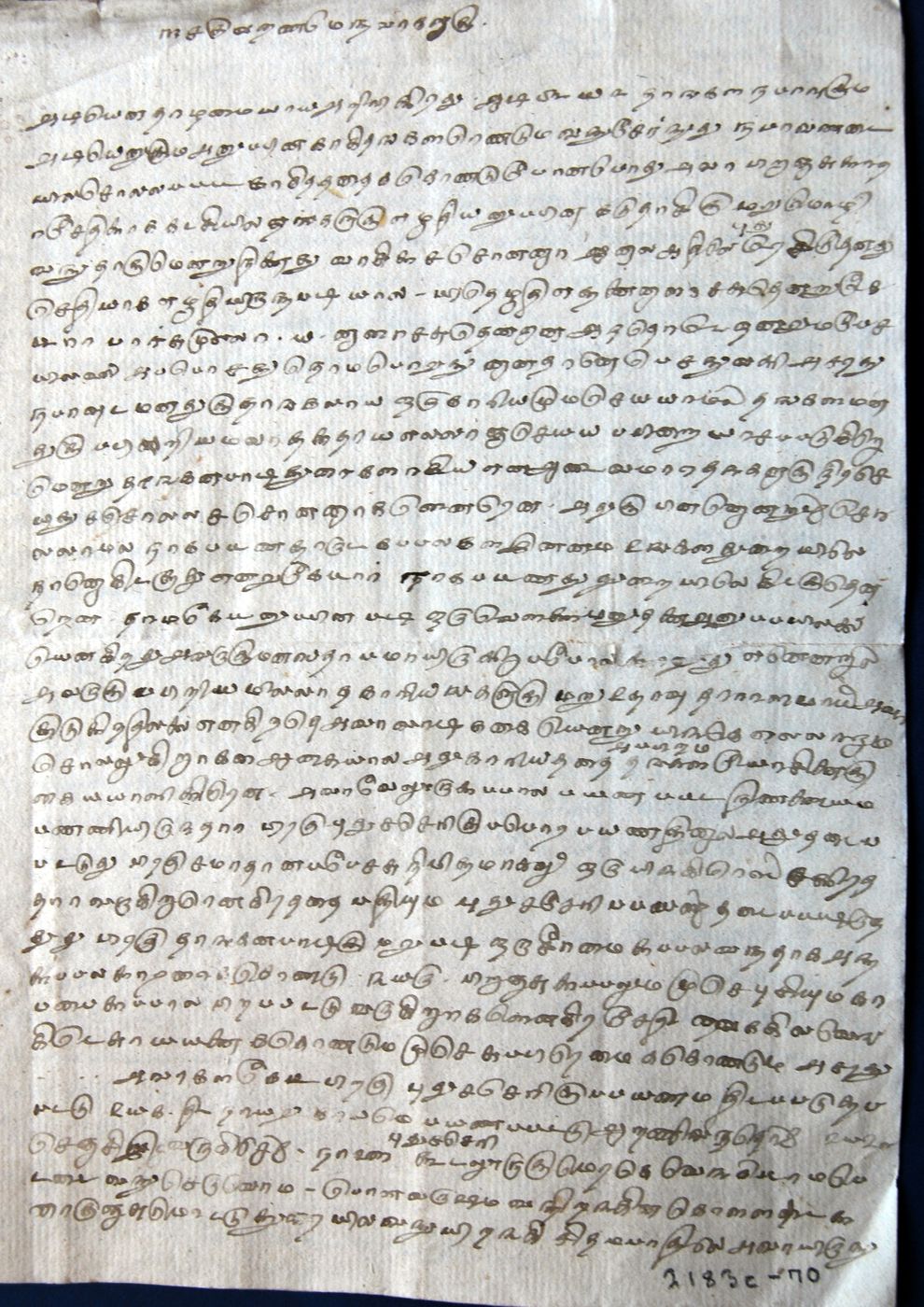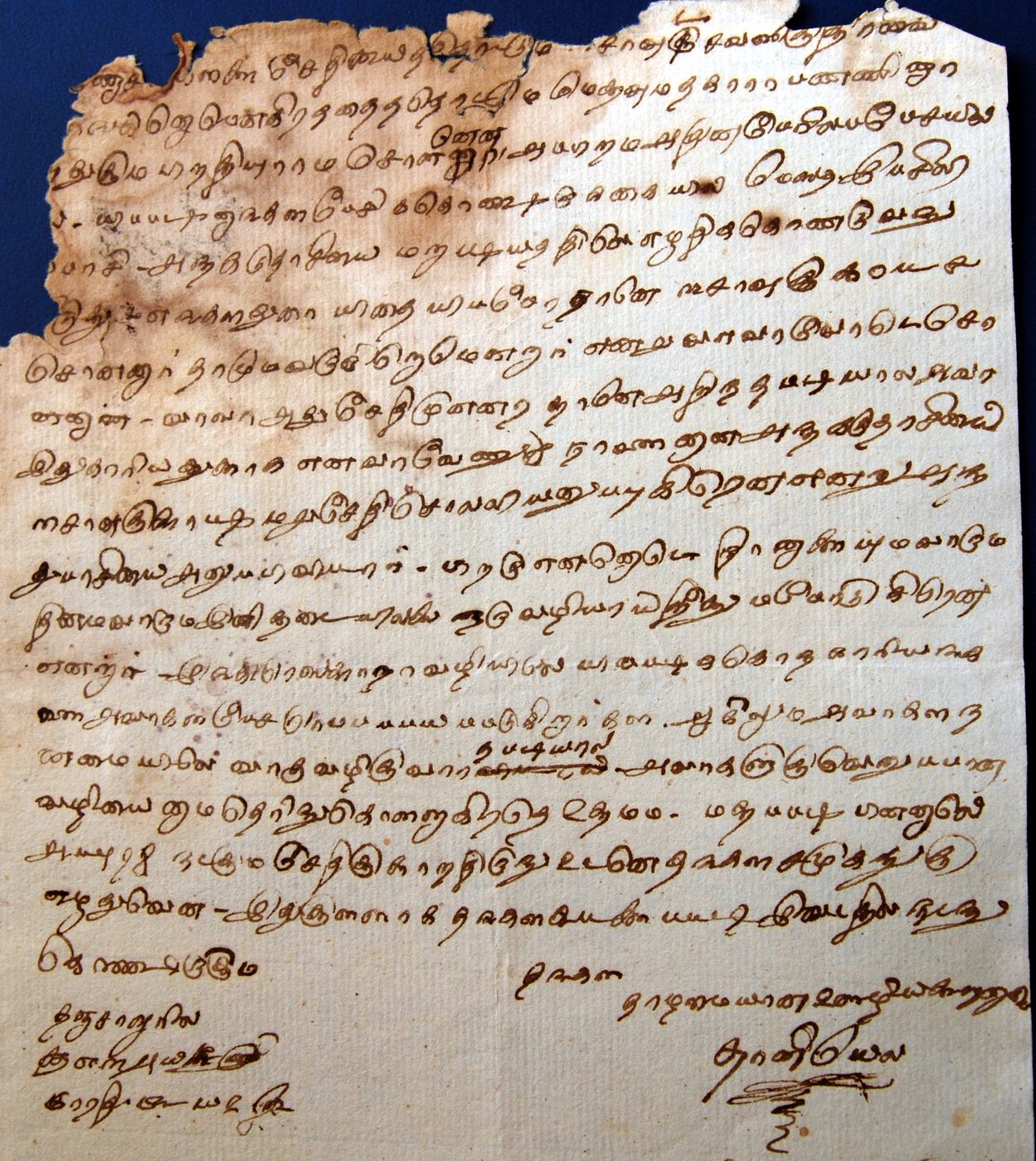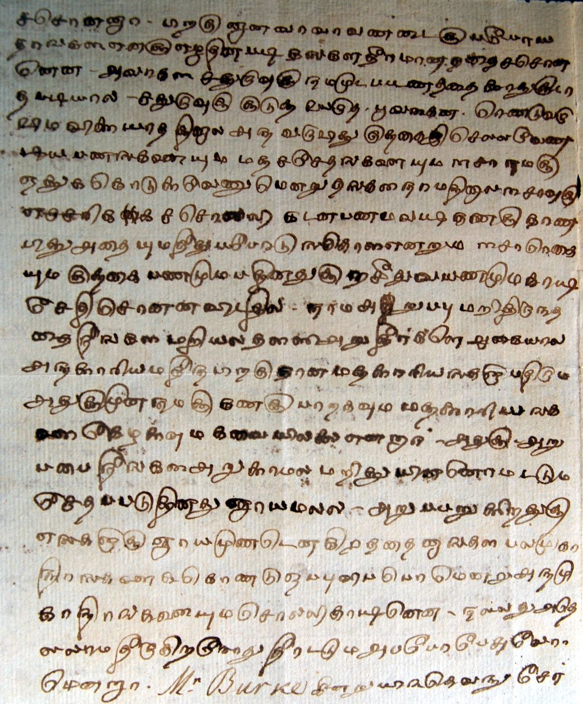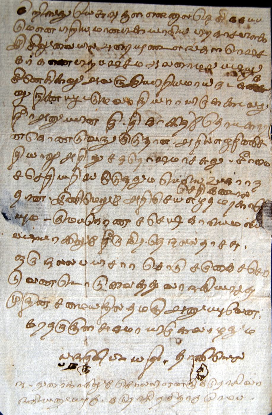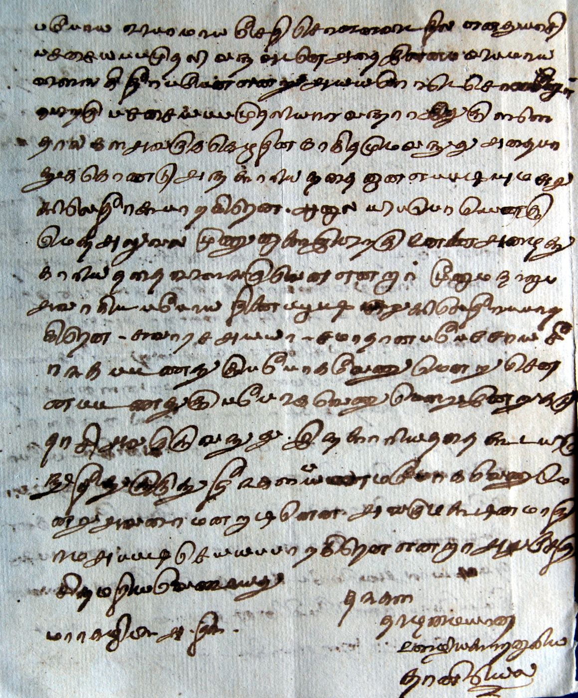 Daniel PulleyDaniel Pulley was born in 1740. He is also referred to as Christian Daniel. His grandfather, Johann d’Almeida (Heike Liebau) had converted from Catholicism to Protestantism and was a catechist at Tranquebar between 1707 and 1744. We know little about Daniel’s parents, except that they were Protestants. Daniel’s father died early and he was brought up by his grandfather on mother’s side. Johann d’ Almeida died in 1746. As a young man, Daniel learnt German and used every opportunity to learn more of it. From 1755, he taught Tamil to the missionaries David Poltzenhagen (1726-1756), Petrus Dame (1731-1766) and Ole Maderup (1711-1776). Besides German, he also learnt Danish. He undertook the post of the second translator (dubash) at the instigation of H. J. Forck. Daniel’s brother, Peter Rajappan was employed in the Danish Halle Mission, and later in the Moravian Brothers (Herrnhuter)A large number of the letters in the Archives are addressed to Piragasam Pulley, a personal dubash to the Governor. The letters cover the period 1782-1785? Most of the letters are dated only with the Tamil month and the Tamil date, and no year. The letters reflect his respect and affection to Piragasam Pulley. However, this situation changed in 1788, and in 1792 Daniel Pulley was decidedly unfriendly to Piragasam Pulley, and to the new governor, Peter Anker. One of the reasons quoted is that Daniel himself wanted the powerful position of the over-dubash, and thus more power. The life-story of Daniel Pulley may never have been known, but for the fact that he had narrated his autobiography to C. S. John, a missionary. C. S. John had sent this information to the Frankesche Stiftungen at Halle, where they are preserved. C. S. John reported that Daniel Pulley died during 1802. However, the proceedings of the Black Court (see 2185b_42under Black Court) seems to have recorded during 1805 that a case was adjourned as Daniel Pulley did not turn up. This probably was Johan Daniel Pulley, the son of Christian Daniel Pulley. . |