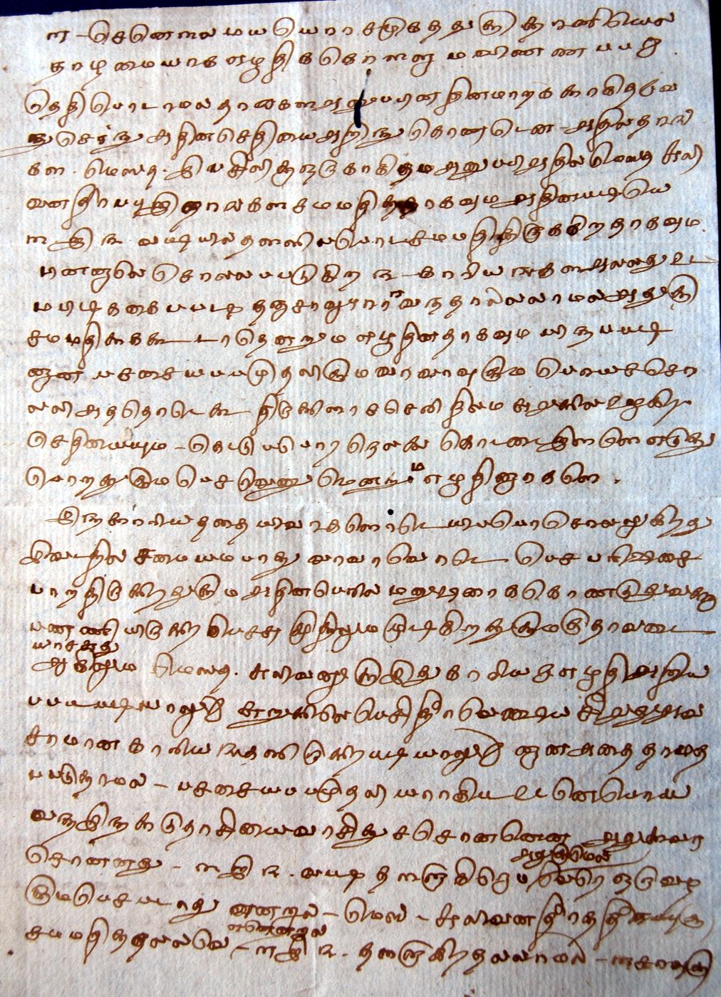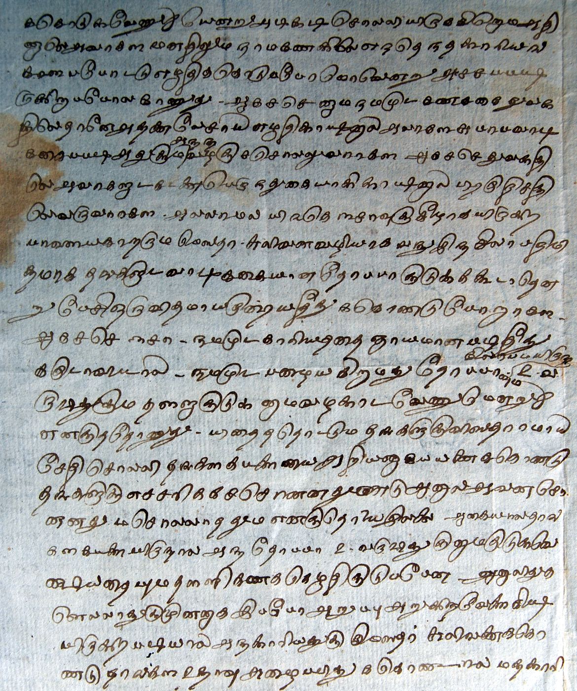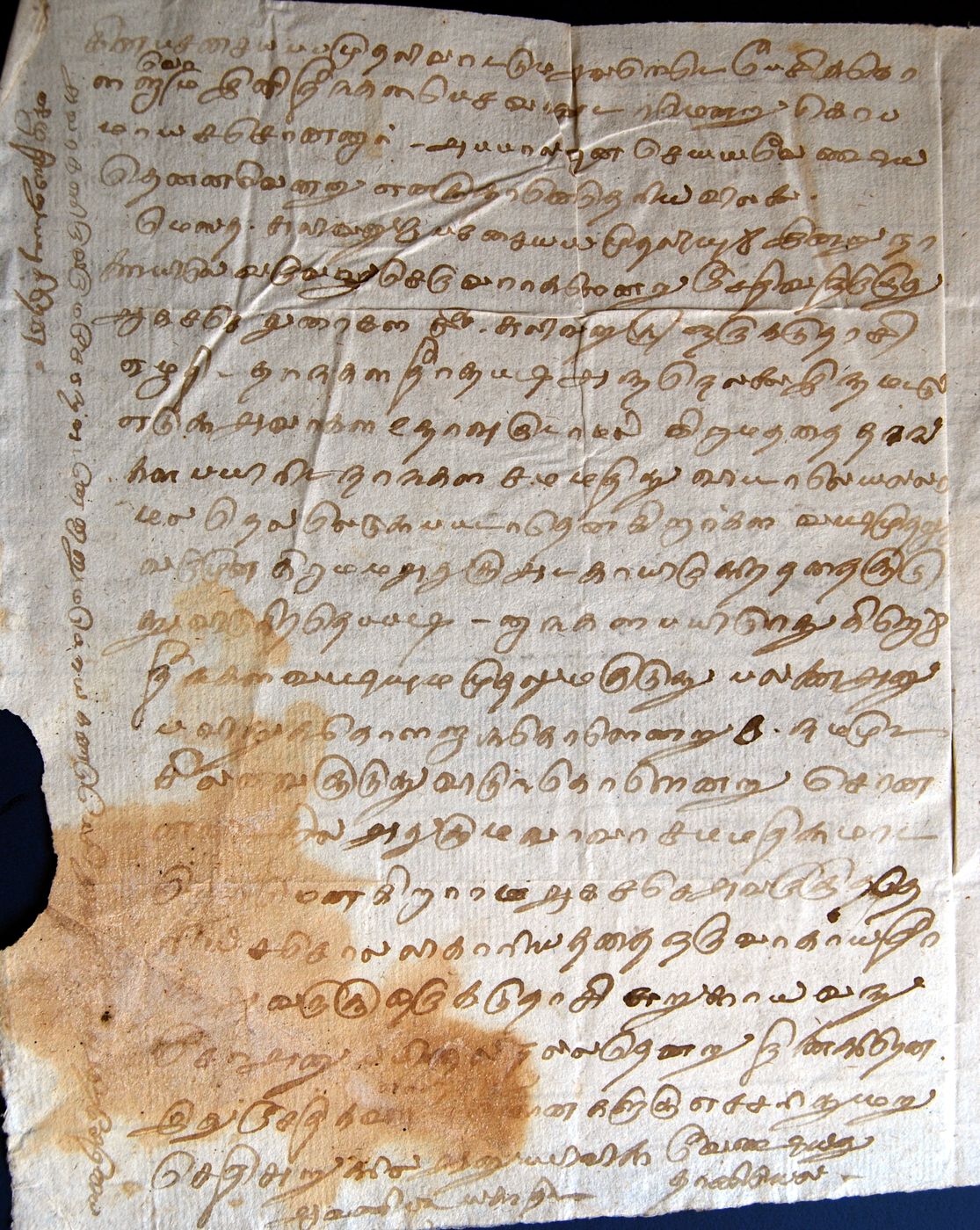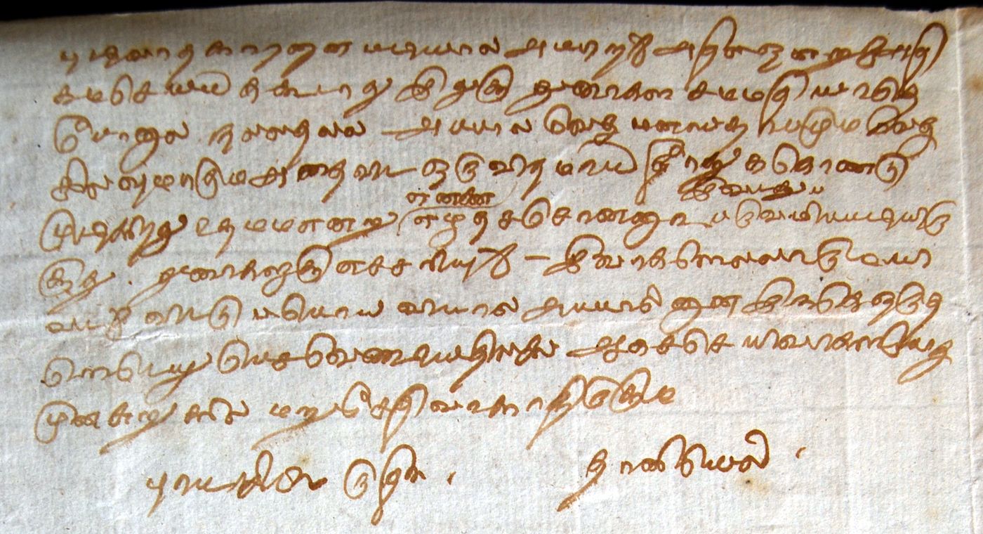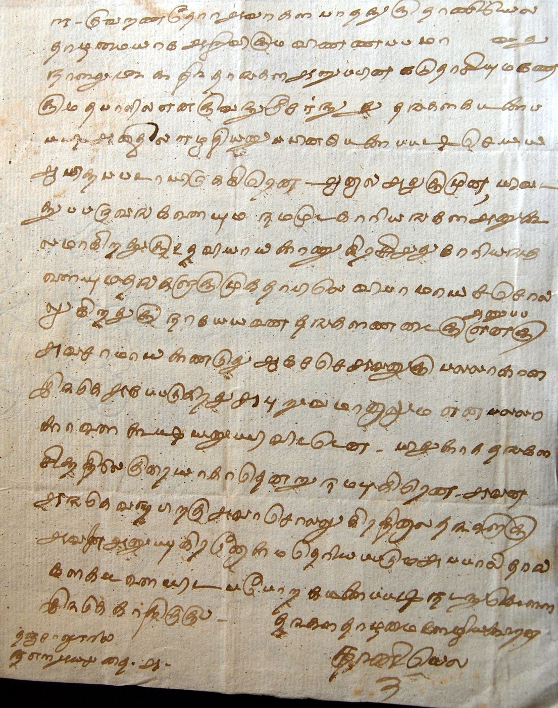 Daniel PulleyDaniel Pulley was born in 1740. He is also referred to as Christian Daniel. His grandfather, Johann d’Almeida (Heike Liebau) had converted from Catholicism to Protestantism and was a catechist at Tranquebar between 1707 and 1744. We know little about Daniel’s parents, except that they were Protestants. Daniel’s father died early and he was brought up by his grandfather on mother’s side. Johann d’ Almeida died in 1746. As a young man, Daniel learnt German and used every opportunity to learn more of it. From 1755, he taught Tamil to the missionaries David Poltzenhagen (1726-1756), Petrus Dame (1731-1766) and Ole Maderup (1711-1776). Besides German, he also learnt Danish. He undertook the post of the second translator (dubash) at the instigation of H. J. Forck. Daniel’s brother, Peter Rajappan was employed in the Danish Halle Mission, and later in the Moravian Brothers (Herrnhuter)A large number of the letters in the Archives are addressed to Piragasam Pulley, a personal dubash to the Governor. The letters cover the period 1782-1785? Most of the letters are dated only with the Tamil month and the Tamil date, and no year. The letters reflect his respect and affection to Piragasam Pulley. However, this situation changed in 1788, and in 1792 Daniel Pulley was decidedly unfriendly to Piragasam Pulley, and to the new governor, Peter Anker. One of the reasons quoted is that Daniel himself wanted the powerful position of the over-dubash, and thus more power. The life-story of Daniel Pulley may never have been known, but for the fact that he had narrated his autobiography to C. S. John, a missionary. C. S. John had sent this information to the Frankesche Stiftungen at Halle, where they are preserved. C. S. John reported that Daniel Pulley died during 1802. However, the proceedings of the Black Court (see 2185b_42under Black Court) seems to have recorded during 1805 that a case was adjourned as Daniel Pulley did not turn up. This probably was Johan Daniel Pulley, the son of Christian Daniel Pulley. . |