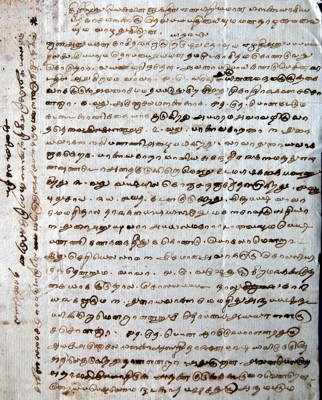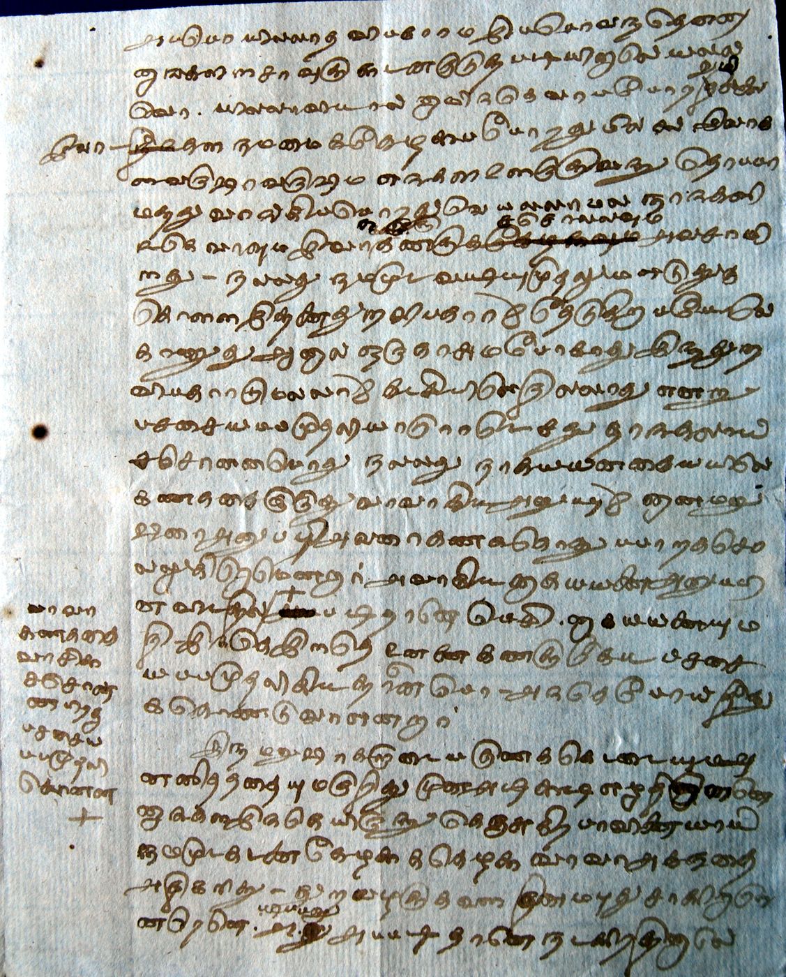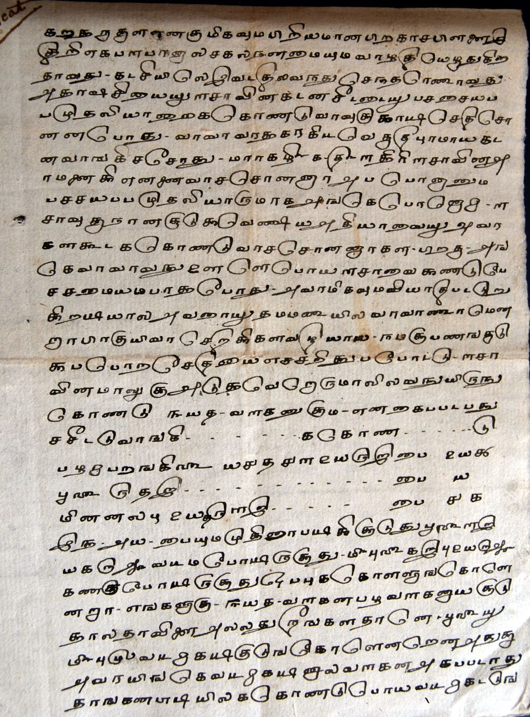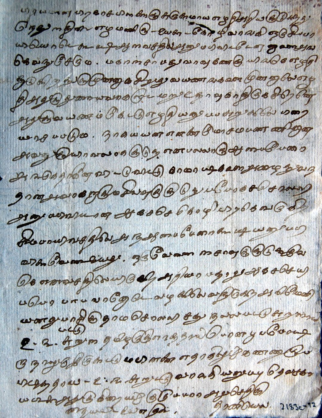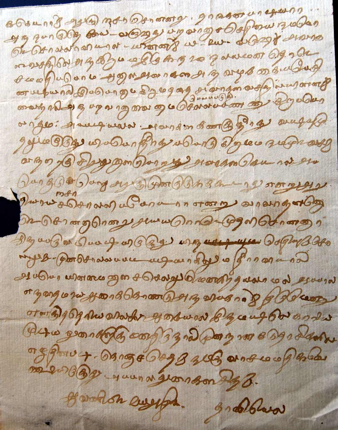Daniel PulleyDaniel Pulley was born in 1740. He is also referred to as Christian Daniel. His grandfather, Johann d’Almeida (Heike Liebau) had converted from Catholicism to Protestantism and was a catechist at Tranquebar between 1707 and 1744. We know little about Daniel’s parents, except that they were Protestants. Daniel’s father died early and he was brought up by his grandfather on mother’s side. Johann d’ Almeida died in 1746. As a young man, Daniel learnt German and used every opportunity to learn more of it. From 1755, he taught Tamil to the missionaries David Poltzenhagen (1726-1756), Petrus Dame (1731-1766) and Ole Maderup (1711-1776). Besides German, he also learnt Danish. He undertook the post of the second translator (dubash) at the instigation of H. J. Forck. Daniel’s brother, Peter Rajappan was employed in the Danish Halle Mission, and later in the Moravian Brothers (Herrnhuter)A large number of the letters in the Archives are addressed to Piragasam Pulley, a personal dubash to the Governor. The letters cover the period 1782-1785? Most of the letters are dated only with the Tamil month and the Tamil date, and no year. The letters reflect his respect and affection to Piragasam Pulley. However, this situation changed in 1788, and in 1792 Daniel Pulley was decidedly unfriendly to Piragasam Pulley, and to the new governor, Peter Anker. One of the reasons quoted is that Daniel himself wanted the powerful position of the over-dubash, and thus more power. The life-story of Daniel Pulley may never have been known, but for the fact that he had narrated his autobiography to C. S. John, a missionary. C. S. John had sent this information to the Frankesche Stiftungen at Halle, where they are preserved. C. S. John reported that Daniel Pulley died during 1802. However, the proceedings of the Black Court (see 2185b_42under Black Court) seems to have recorded during 1805 that a case was adjourned as Daniel Pulley did not turn up. This probably was Johan Daniel Pulley, the son of Christian Daniel Pulley. . |