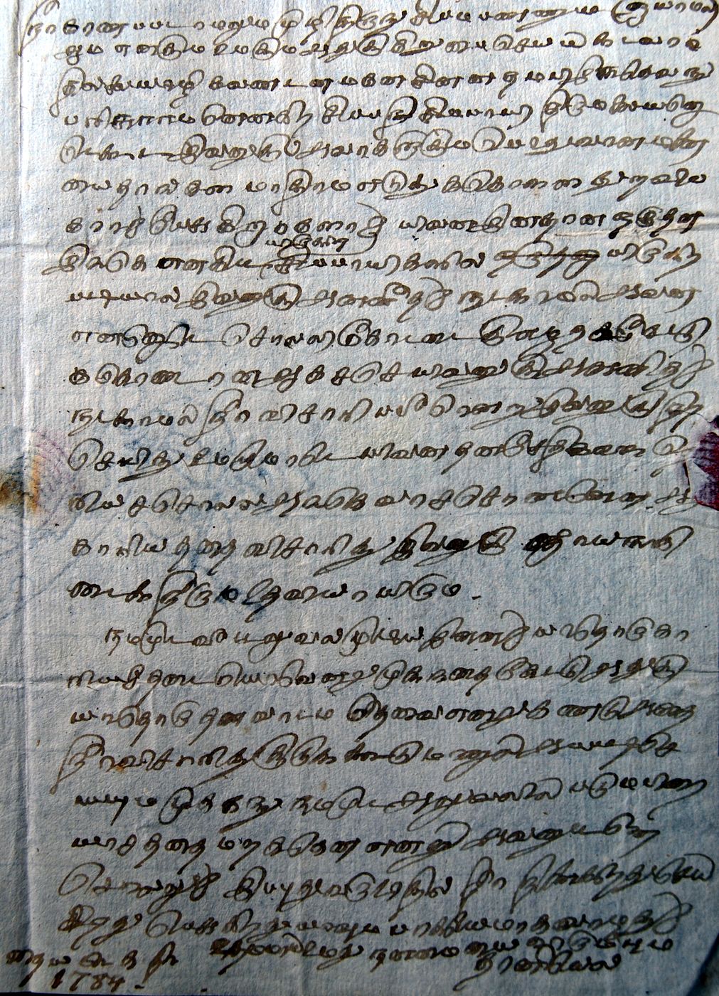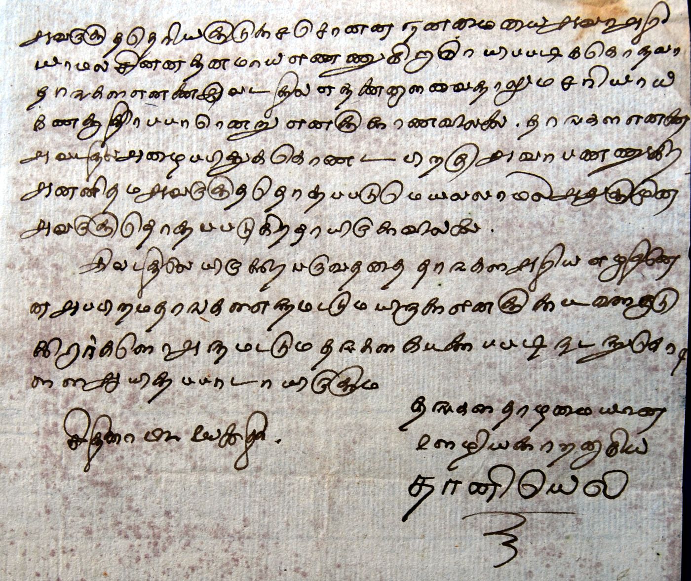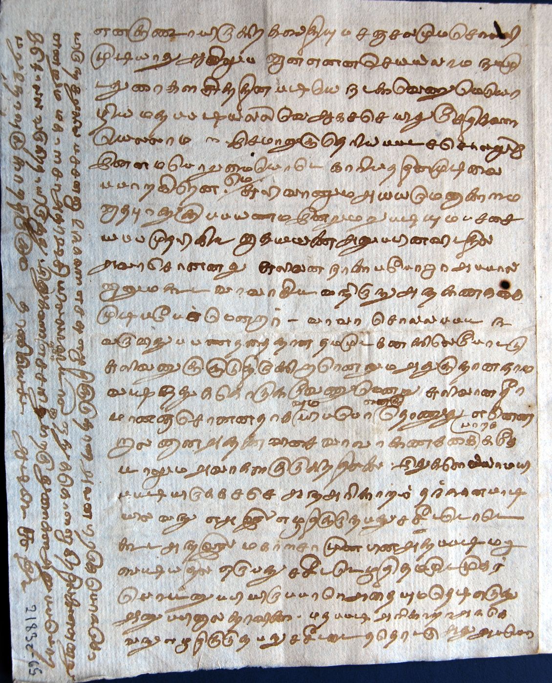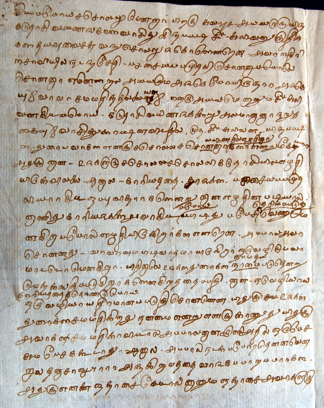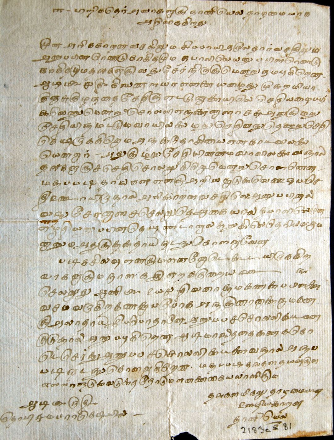 Daniel PulleyDaniel Pulley was born in 1740. He is also referred to as Christian Daniel. His grandfather, Johann d’Almeida (Heike Liebau) had converted from Catholicism to Protestantism and was a catechist at Tranquebar between 1707 and 1744. We know little about Daniel’s parents, except that they were Protestants. Daniel’s father died early and he was brought up by his grandfather on mother’s side. Johann d’ Almeida died in 1746. As a young man, Daniel learnt German and used every opportunity to learn more of it. From 1755, he taught Tamil to the missionaries David Poltzenhagen (1726-1756), Petrus Dame (1731-1766) and Ole Maderup (1711-1776). Besides German, he also learnt Danish. He undertook the post of the second translator (dubash) at the instigation of H. J. Forck. Daniel’s brother, Peter Rajappan was employed in the Danish Halle Mission, and later in the Moravian Brothers (Herrnhuter)A large number of the letters in the Archives are addressed to Piragasam Pulley, a personal dubash to the Governor. The letters cover the period 1782-1785? Most of the letters are dated only with the Tamil month and the Tamil date, and no year. The letters reflect his respect and affection to Piragasam Pulley. However, this situation changed in 1788, and in 1792 Daniel Pulley was decidedly unfriendly to Piragasam Pulley, and to the new governor, Peter Anker. One of the reasons quoted is that Daniel himself wanted the powerful position of the over-dubash, and thus more power. The life-story of Daniel Pulley may never have been known, but for the fact that he had narrated his autobiography to C. S. John, a missionary. C. S. John had sent this information to the Frankesche Stiftungen at Halle, where they are preserved. C. S. John reported that Daniel Pulley died during 1802. However, the proceedings of the Black Court (see 2185b_42under Black Court) seems to have recorded during 1805 that a case was adjourned as Daniel Pulley did not turn up. This probably was Johan Daniel Pulley, the son of Christian Daniel Pulley. . |