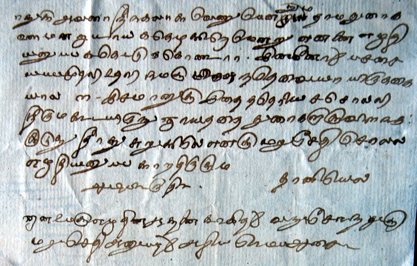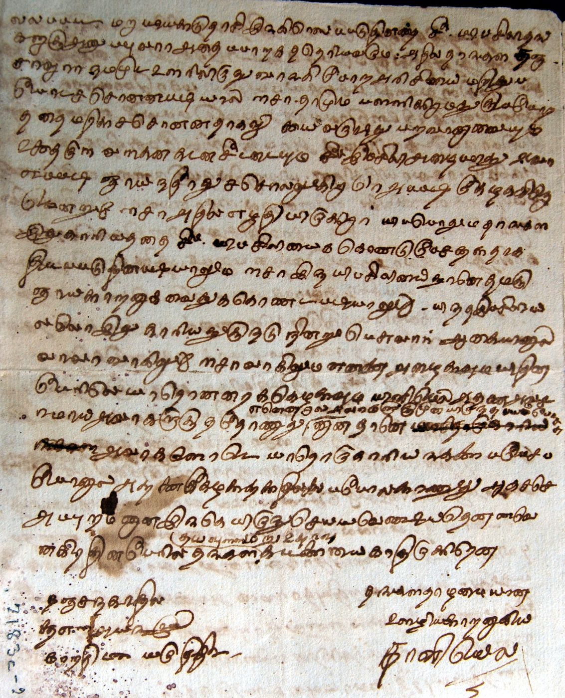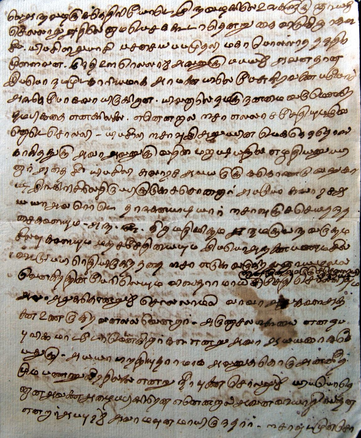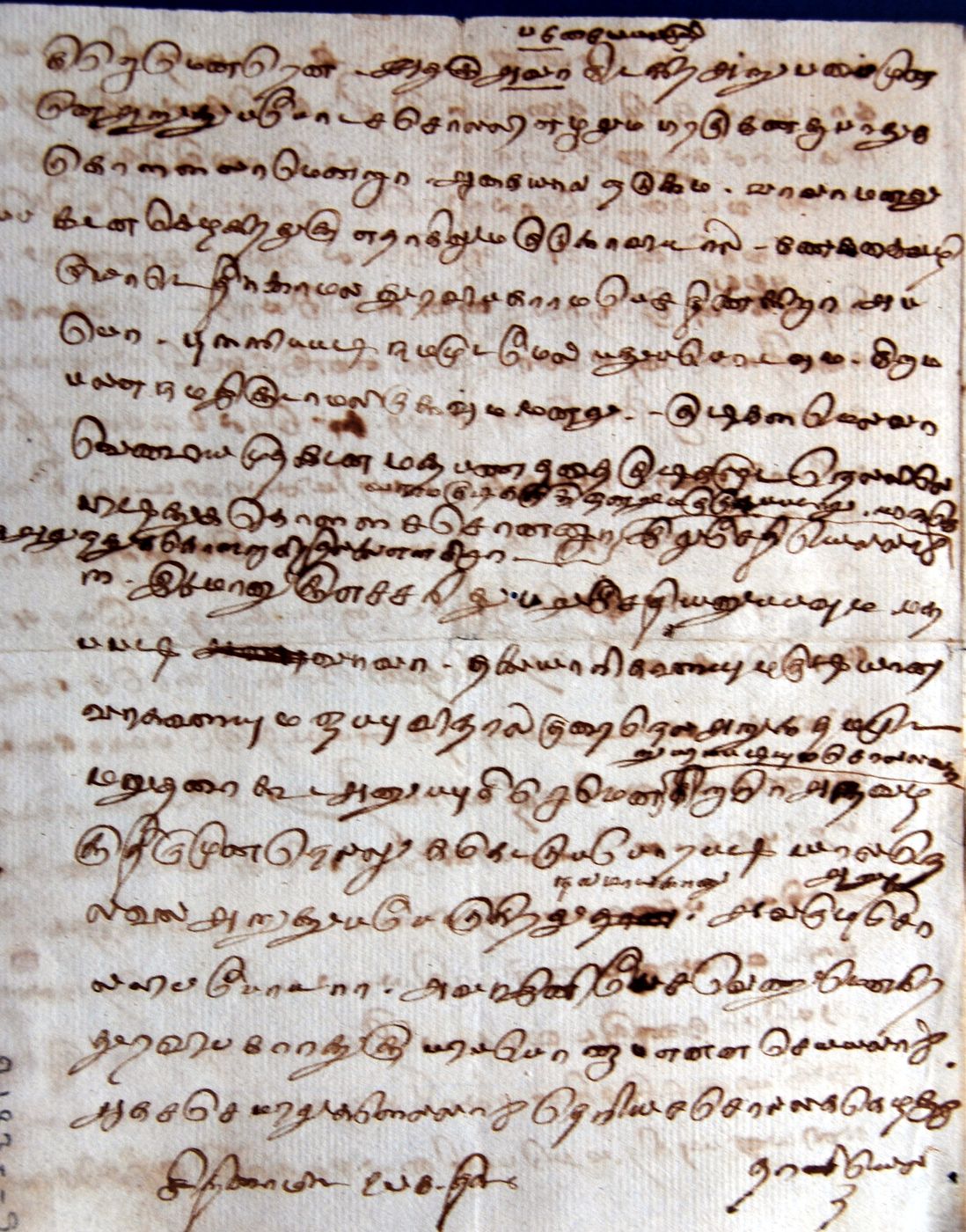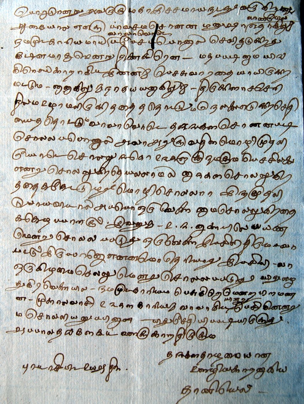 Daniel PulleyDaniel Pulley was born in 1740. He is also referred to as Christian Daniel. His grandfather, Johann d’Almeida (Heike Liebau) had converted from Catholicism to Protestantism and was a catechist at Tranquebar between 1707 and 1744. We know little about Daniel’s parents, except that they were Protestants. Daniel’s father died early and he was brought up by his grandfather on mother’s side. Johann d’ Almeida died in 1746. As a young man, Daniel learnt German and used every opportunity to learn more of it. From 1755, he taught Tamil to the missionaries David Poltzenhagen (1726-1756), Petrus Dame (1731-1766) and Ole Maderup (1711-1776). Besides German, he also learnt Danish. He undertook the post of the second translator (dubash) at the instigation of H. J. Forck. Daniel’s brother, Peter Rajappan was employed in the Danish Halle Mission, and later in the Moravian Brothers (Herrnhuter)A large number of the letters in the Archives are addressed to Piragasam Pulley, a personal dubash to the Governor. The letters cover the period 1782-1785? Most of the letters are dated only with the Tamil month and the Tamil date, and no year. The letters reflect his respect and affection to Piragasam Pulley. However, this situation changed in 1788, and in 1792 Daniel Pulley was decidedly unfriendly to Piragasam Pulley, and to the new governor, Peter Anker. One of the reasons quoted is that Daniel himself wanted the powerful position of the over-dubash, and thus more power. The life-story of Daniel Pulley may never have been known, but for the fact that he had narrated his autobiography to C. S. John, a missionary. C. S. John had sent this information to the Frankesche Stiftungen at Halle, where they are preserved. C. S. John reported that Daniel Pulley died during 1802. However, the proceedings of the Black Court (see 2185b_42under Black Court) seems to have recorded during 1805 that a case was adjourned as Daniel Pulley did not turn up. This probably was Johan Daniel Pulley, the son of Christian Daniel Pulley. . |