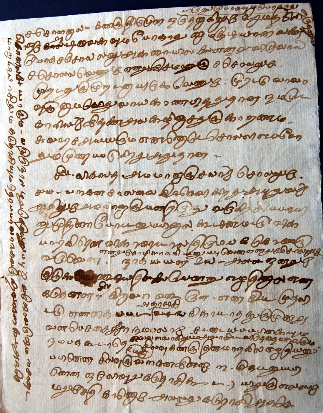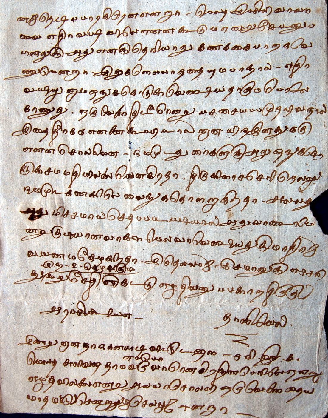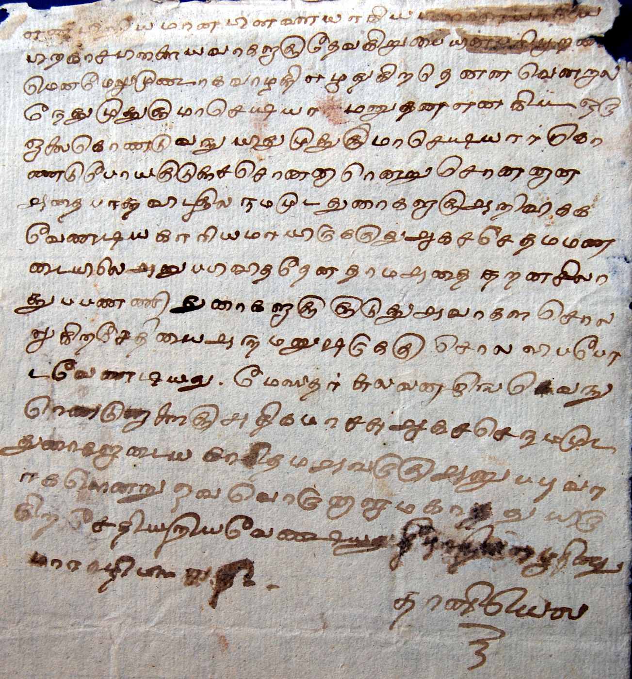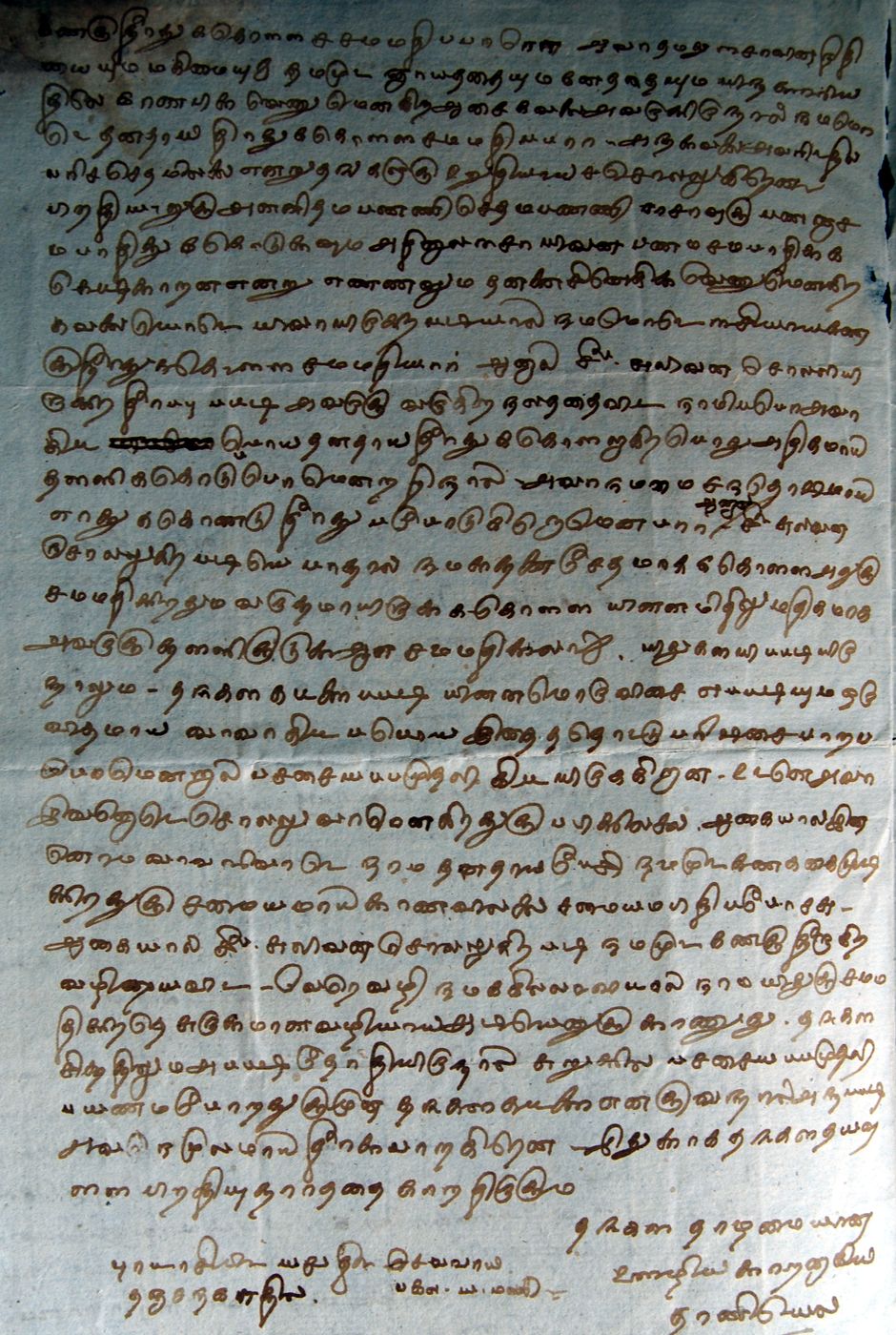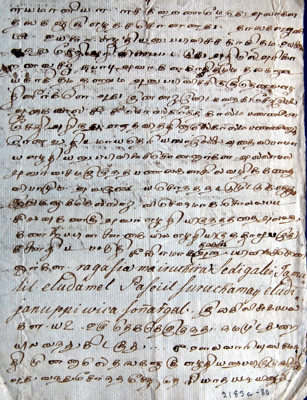 Daniel PulleyDaniel Pulley was born in 1740. He is also referred to as Christian Daniel. His grandfather, Johann d’Almeida (Heike Liebau) had converted from Catholicism to Protestantism and was a catechist at Tranquebar between 1707 and 1744. We know little about Daniel’s parents, except that they were Protestants. Daniel’s father died early and he was brought up by his grandfather on mother’s side. Johann d’ Almeida died in 1746. As a young man, Daniel learnt German and used every opportunity to learn more of it. From 1755, he taught Tamil to the missionaries David Poltzenhagen (1726-1756), Petrus Dame (1731-1766) and Ole Maderup (1711-1776). Besides German, he also learnt Danish. He undertook the post of the second translator (dubash) at the instigation of H. J. Forck. Daniel’s brother, Peter Rajappan was employed in the Danish Halle Mission, and later in the Moravian Brothers (Herrnhuter)A large number of the letters in the Archives are addressed to Piragasam Pulley, a personal dubash to the Governor. The letters cover the period 1782-1785? Most of the letters are dated only with the Tamil month and the Tamil date, and no year. The letters reflect his respect and affection to Piragasam Pulley. However, this situation changed in 1788, and in 1792 Daniel Pulley was decidedly unfriendly to Piragasam Pulley, and to the new governor, Peter Anker. One of the reasons quoted is that Daniel himself wanted the powerful position of the over-dubash, and thus more power. The life-story of Daniel Pulley may never have been known, but for the fact that he had narrated his autobiography to C. S. John, a missionary. C. S. John had sent this information to the Frankesche Stiftungen at Halle, where they are preserved. C. S. John reported that Daniel Pulley died during 1802. However, the proceedings of the Black Court (see 2185b_42under Black Court) seems to have recorded during 1805 that a case was adjourned as Daniel Pulley did not turn up. This probably was Johan Daniel Pulley, the son of Christian Daniel Pulley. . |