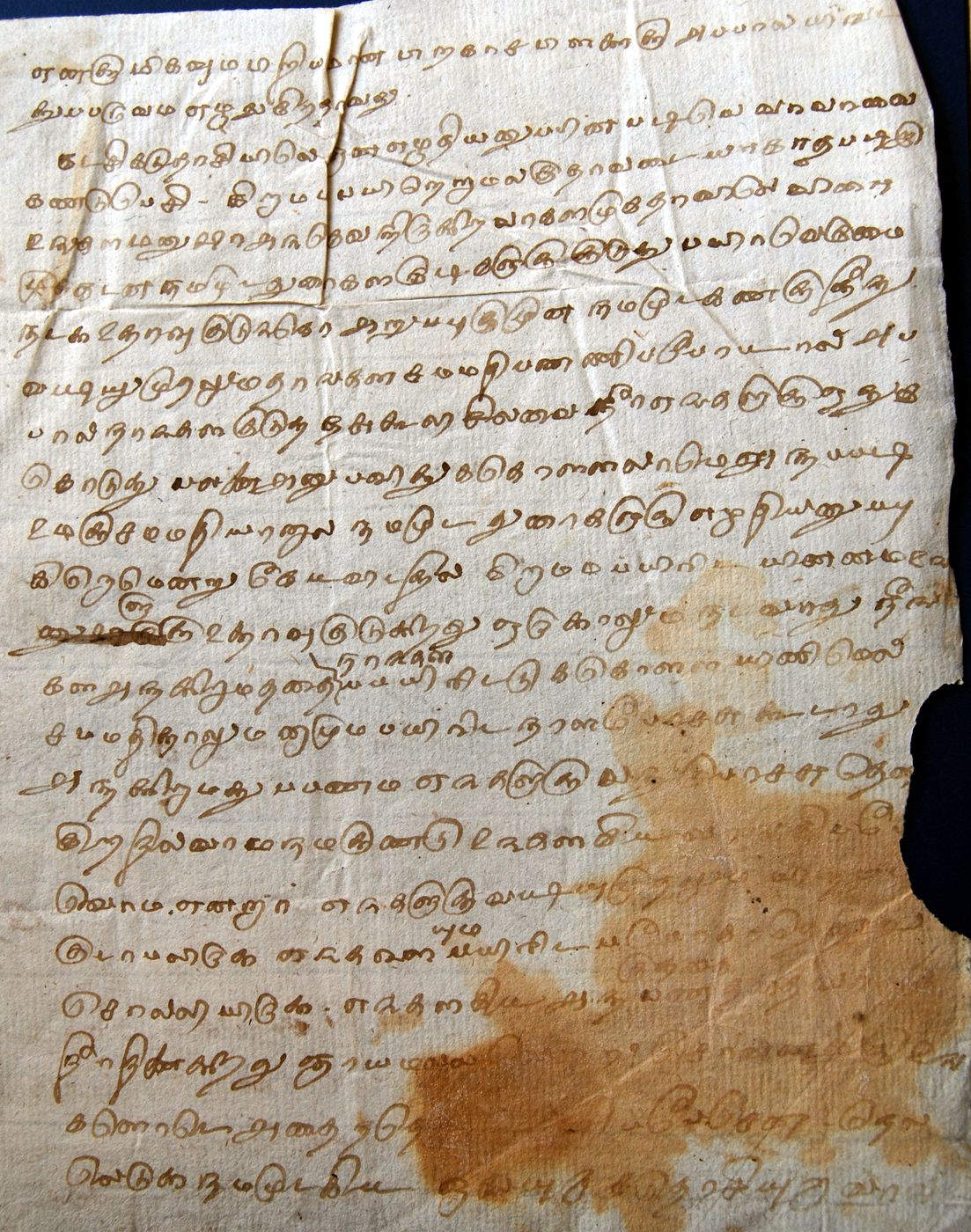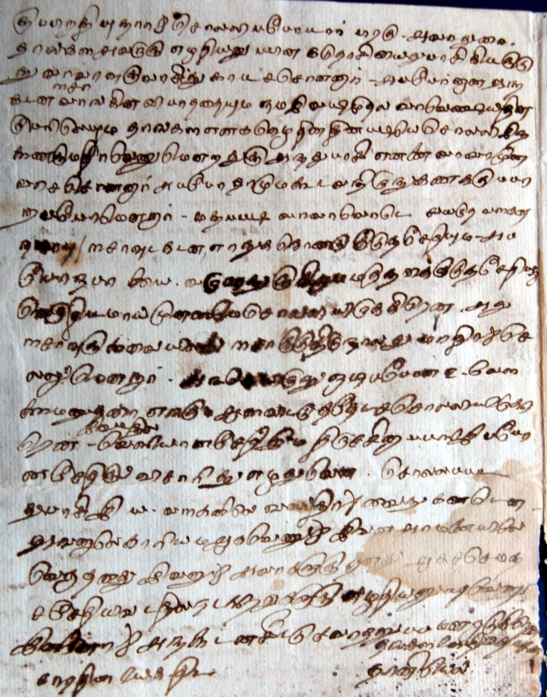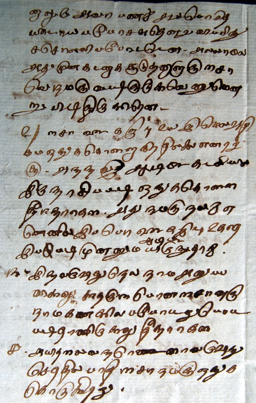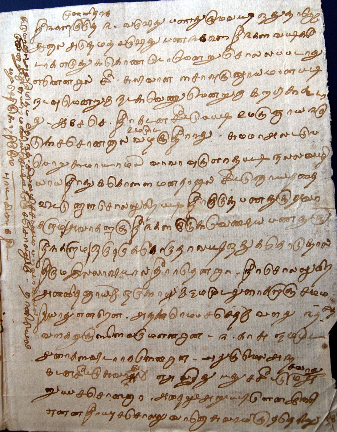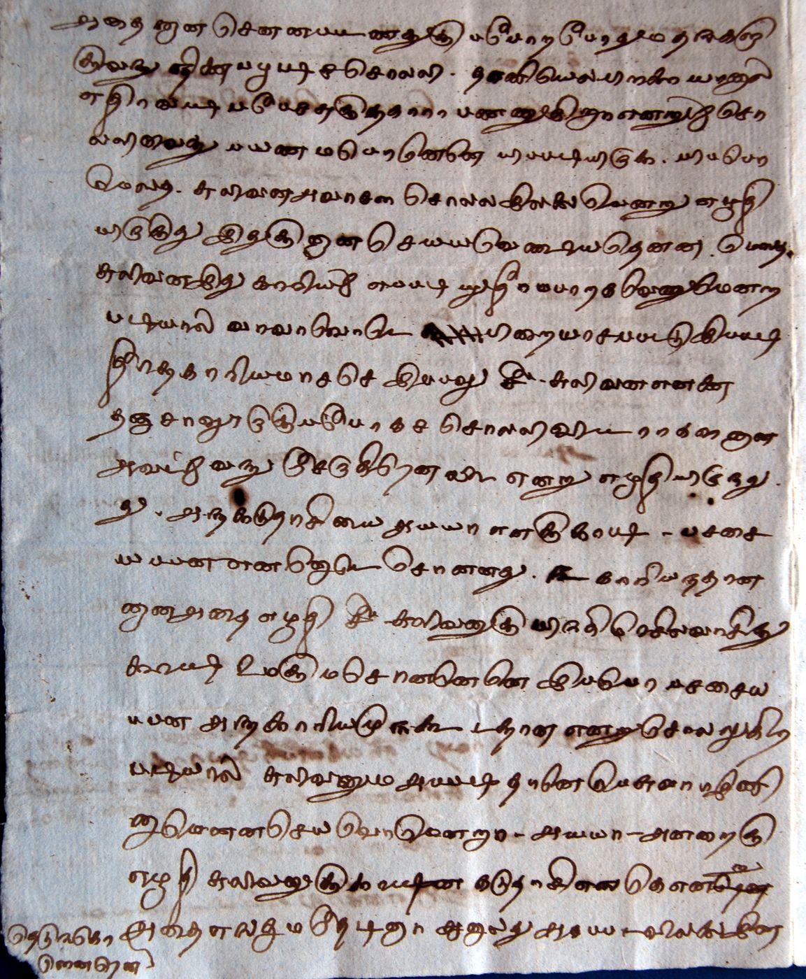Daniel PulleyDaniel Pulley was born in 1740. He is also referred to as Christian Daniel. His grandfather, Johann d’Almeida (Heike Liebau) had converted from Catholicism to Protestantism and was a catechist at Tranquebar between 1707 and 1744. We know little about Daniel’s parents, except that they were Protestants. Daniel’s father died early and he was brought up by his grandfather on mother’s side. Johann d’ Almeida died in 1746. As a young man, Daniel learnt German and used every opportunity to learn more of it. From 1755, he taught Tamil to the missionaries David Poltzenhagen (1726-1756), Petrus Dame (1731-1766) and Ole Maderup (1711-1776). Besides German, he also learnt Danish. He undertook the post of the second translator (dubash) at the instigation of H. J. Forck. Daniel’s brother, Peter Rajappan was employed in the Danish Halle Mission, and later in the Moravian Brothers (Herrnhuter)A large number of the letters in the Archives are addressed to Piragasam Pulley, a personal dubash to the Governor. The letters cover the period 1782-1785? Most of the letters are dated only with the Tamil month and the Tamil date, and no year. The letters reflect his respect and affection to Piragasam Pulley. However, this situation changed in 1788, and in 1792 Daniel Pulley was decidedly unfriendly to Piragasam Pulley, and to the new governor, Peter Anker. One of the reasons quoted is that Daniel himself wanted the powerful position of the over-dubash, and thus more power. The life-story of Daniel Pulley may never have been known, but for the fact that he had narrated his autobiography to C. S. John, a missionary. C. S. John had sent this information to the Frankesche Stiftungen at Halle, where they are preserved. C. S. John reported that Daniel Pulley died during 1802. However, the proceedings of the Black Court (see 2185b_42under Black Court) seems to have recorded during 1805 that a case was adjourned as Daniel Pulley did not turn up. This probably was Johan Daniel Pulley, the son of Christian Daniel Pulley. . |