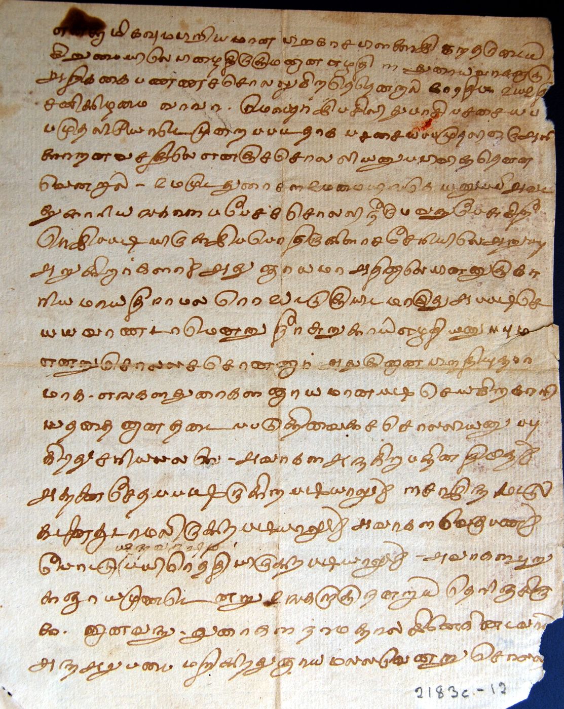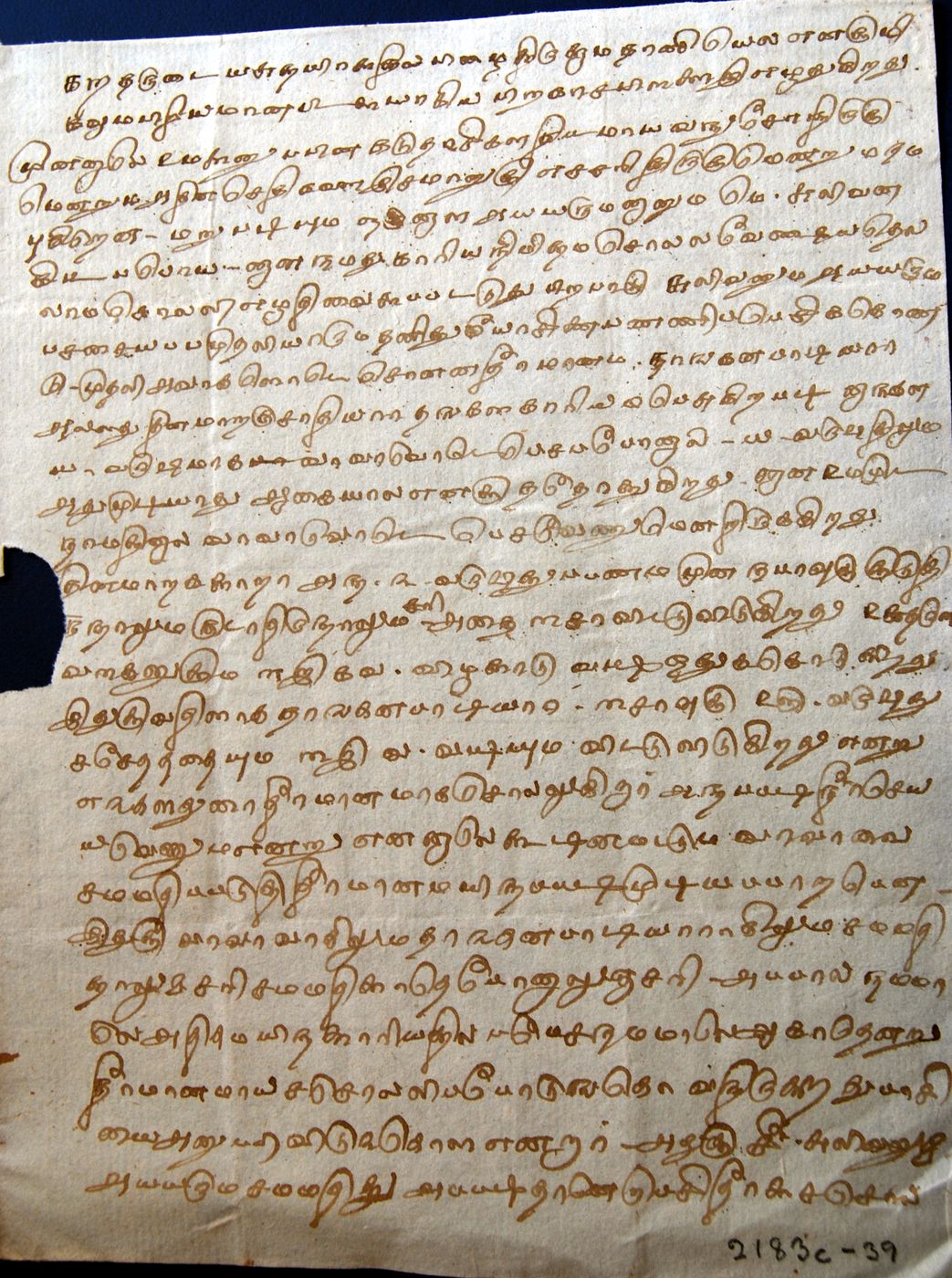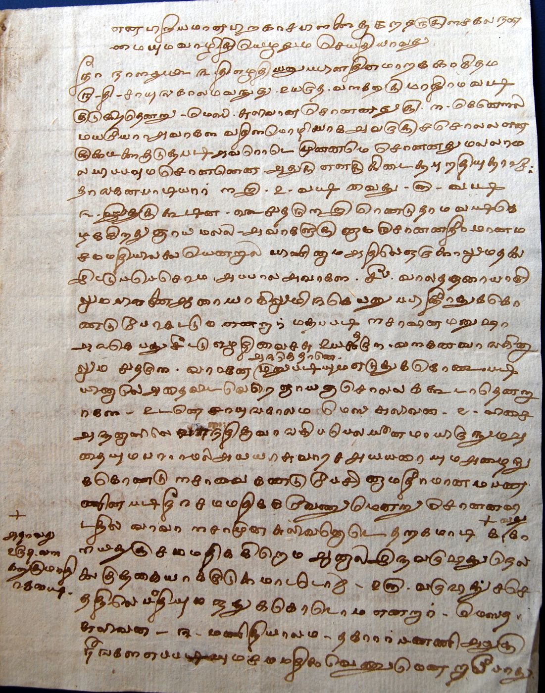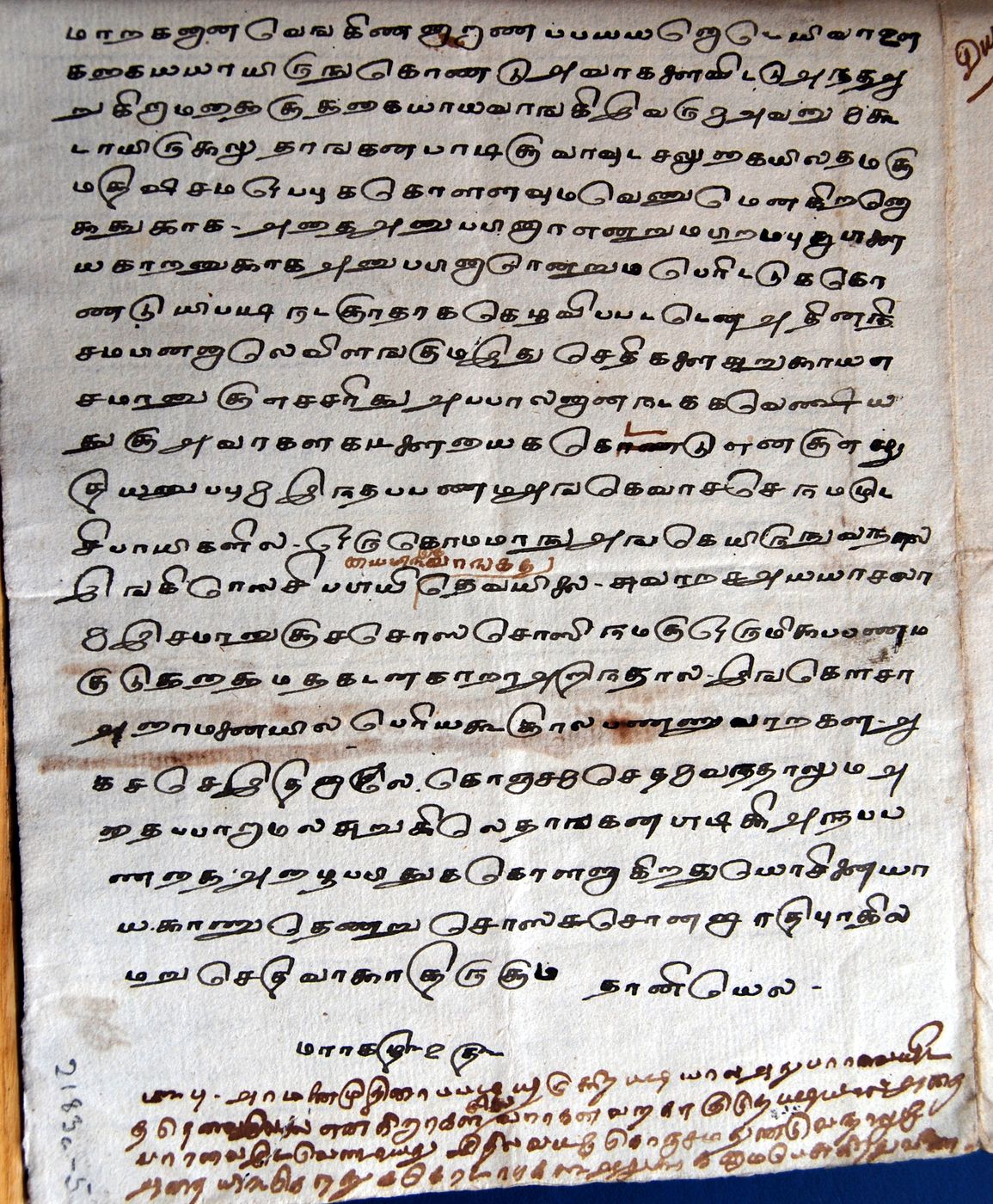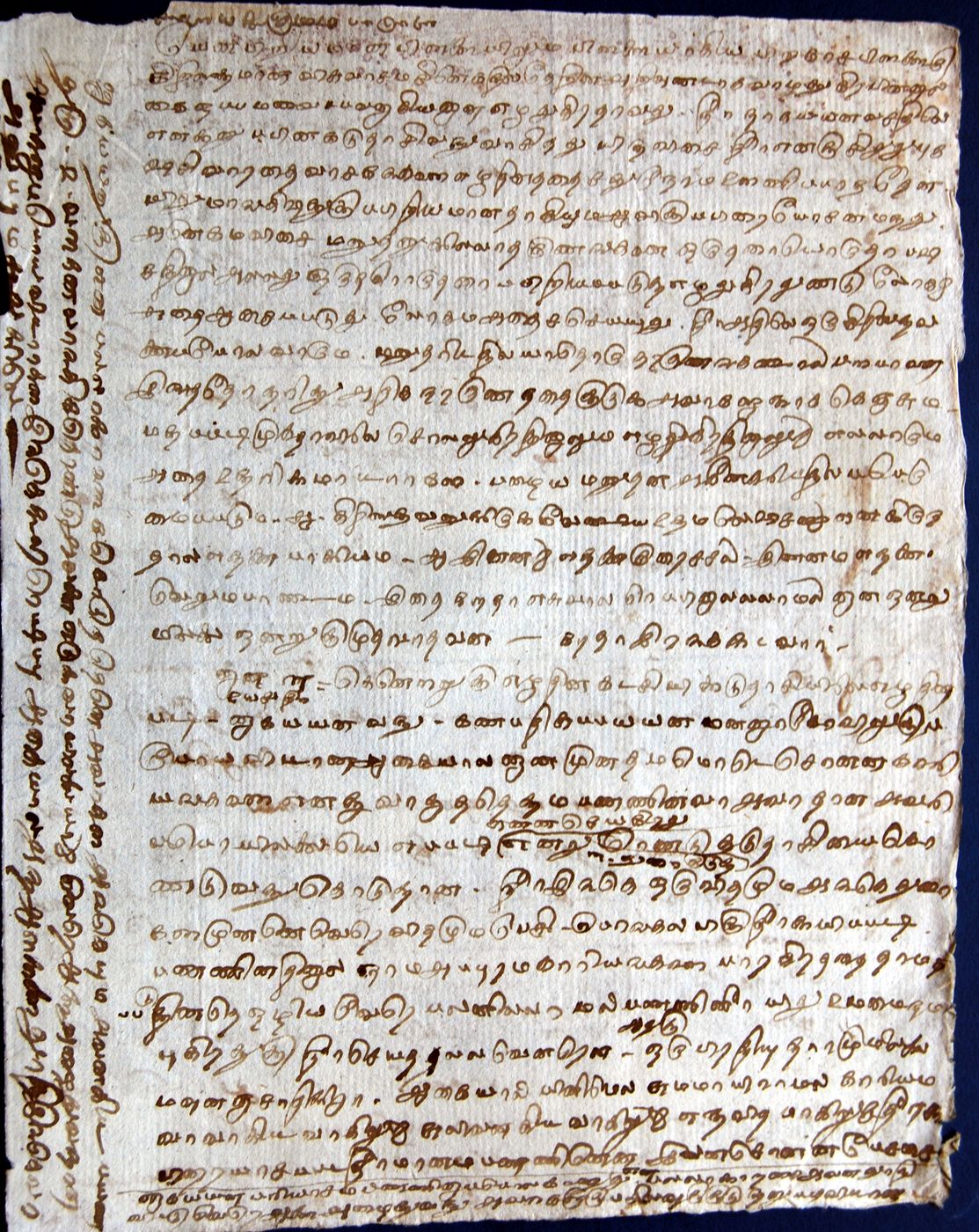 Daniel PulleyDaniel Pulley was born in 1740. He is also referred to as Christian Daniel. His grandfather, Johann d’Almeida (Heike Liebau) had converted from Catholicism to Protestantism and was a catechist at Tranquebar between 1707 and 1744. We know little about Daniel’s parents, except that they were Protestants. Daniel’s father died early and he was brought up by his grandfather on mother’s side. Johann d’ Almeida died in 1746. As a young man, Daniel learnt German and used every opportunity to learn more of it. From 1755, he taught Tamil to the missionaries David Poltzenhagen (1726-1756), Petrus Dame (1731-1766) and Ole Maderup (1711-1776). Besides German, he also learnt Danish. He undertook the post of the second translator (dubash) at the instigation of H. J. Forck. Daniel’s brother, Peter Rajappan was employed in the Danish Halle Mission, and later in the Moravian Brothers (Herrnhuter)A large number of the letters in the Archives are addressed to Piragasam Pulley, a personal dubash to the Governor. The letters cover the period 1782-1785? Most of the letters are dated only with the Tamil month and the Tamil date, and no year. The letters reflect his respect and affection to Piragasam Pulley. However, this situation changed in 1788, and in 1792 Daniel Pulley was decidedly unfriendly to Piragasam Pulley, and to the new governor, Peter Anker. One of the reasons quoted is that Daniel himself wanted the powerful position of the over-dubash, and thus more power. The life-story of Daniel Pulley may never have been known, but for the fact that he had narrated his autobiography to C. S. John, a missionary. C. S. John had sent this information to the Frankesche Stiftungen at Halle, where they are preserved. C. S. John reported that Daniel Pulley died during 1802. However, the proceedings of the Black Court (see 2185b_42under Black Court) seems to have recorded during 1805 that a case was adjourned as Daniel Pulley did not turn up. This probably was Johan Daniel Pulley, the son of Christian Daniel Pulley. . |